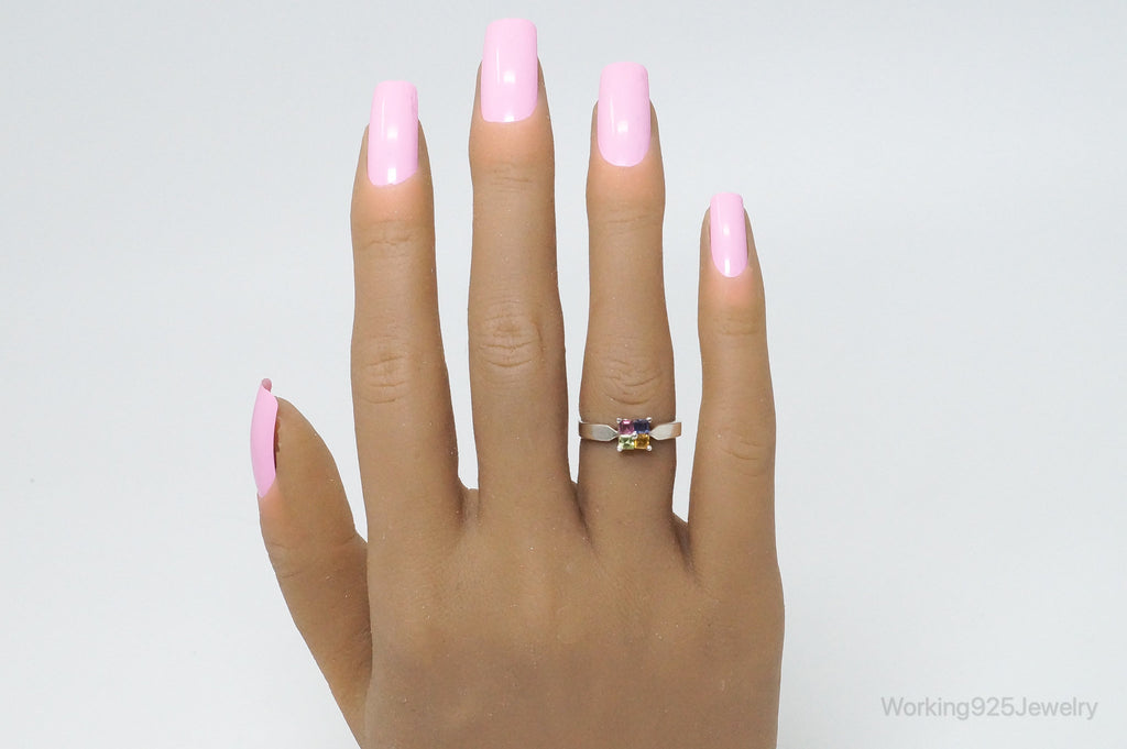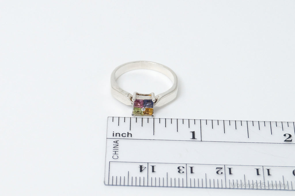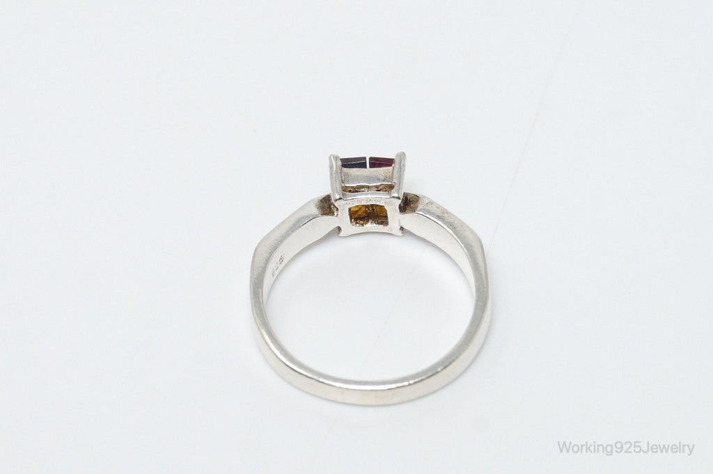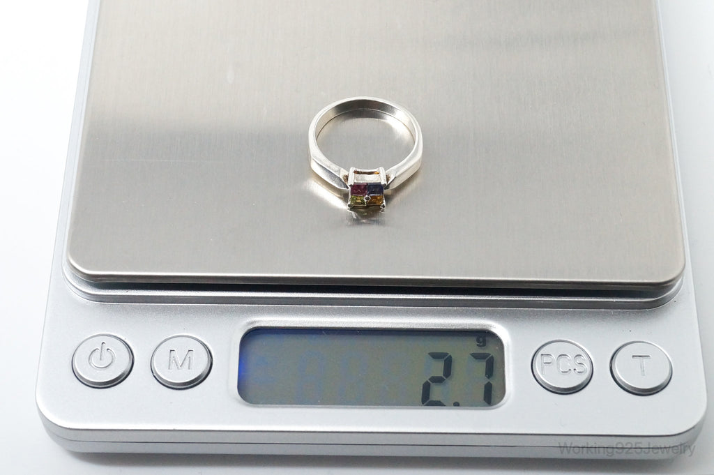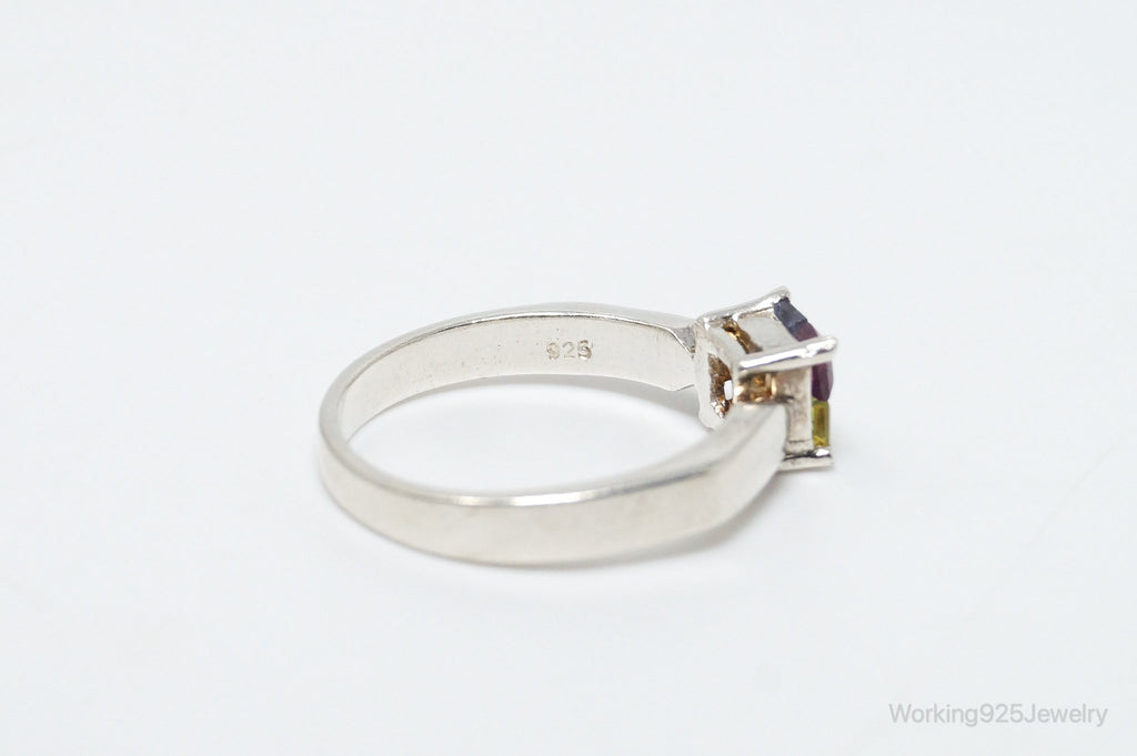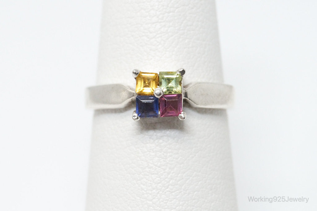 Vintage Art Deco Multi Gem Sterling Silver Ring - Size 6