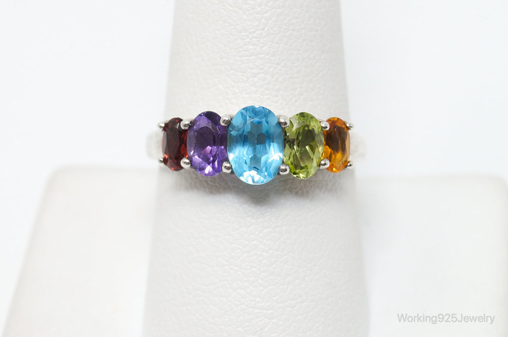 Vintage Art Deco Multi Gem Sterling Silver Ring - Size 8.75