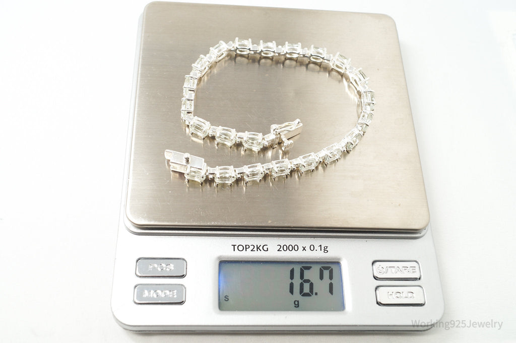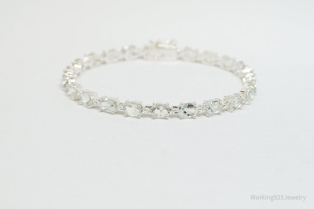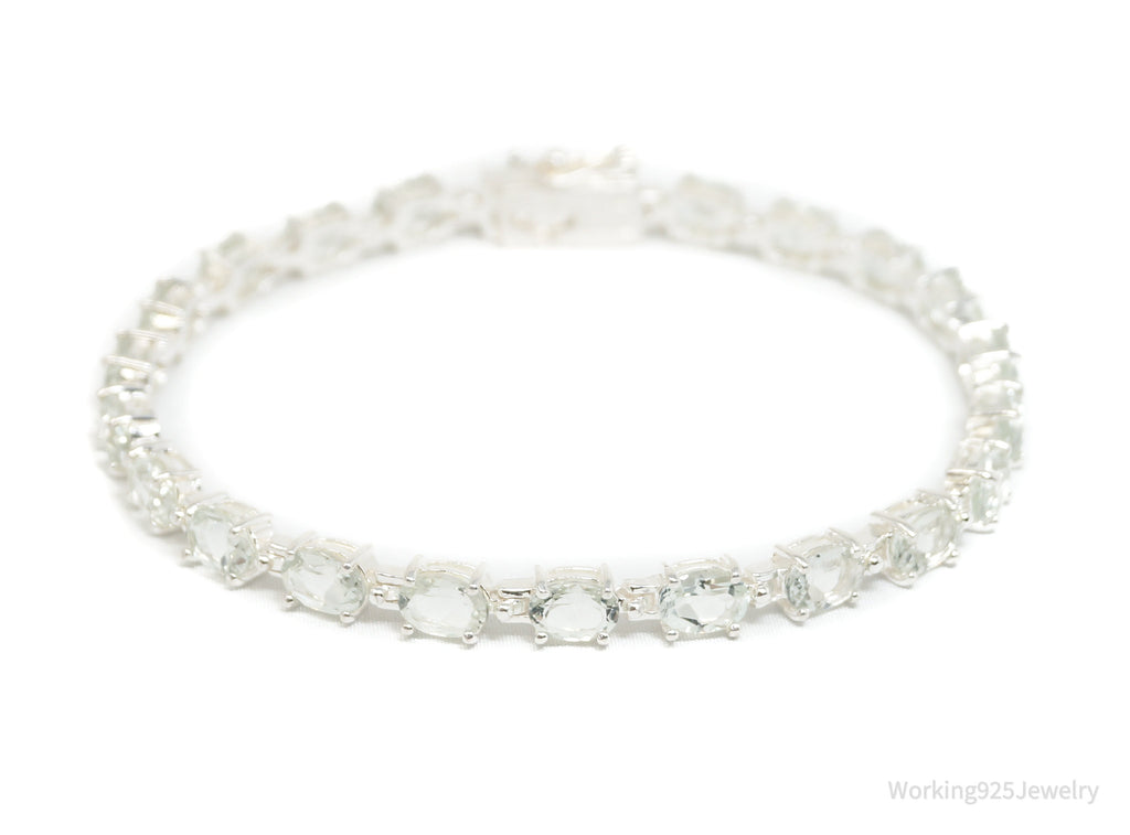 Vintage Art Deco Pale Green Gemstone Sterling Silver Tennis Bracelet