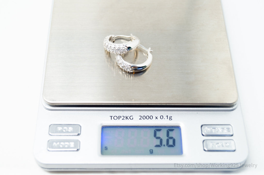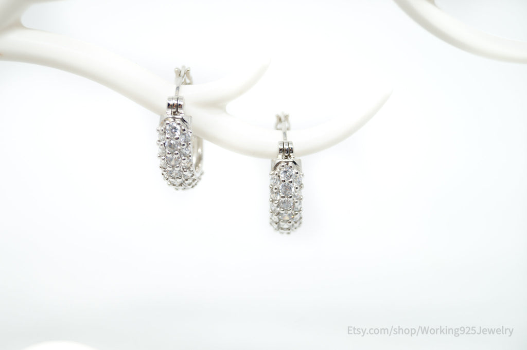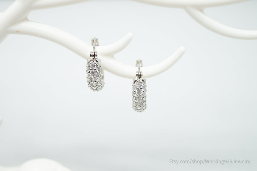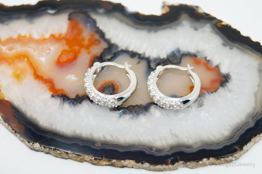 Vintage Art Deco Style Cz Sterling Silver Hoop Earrings