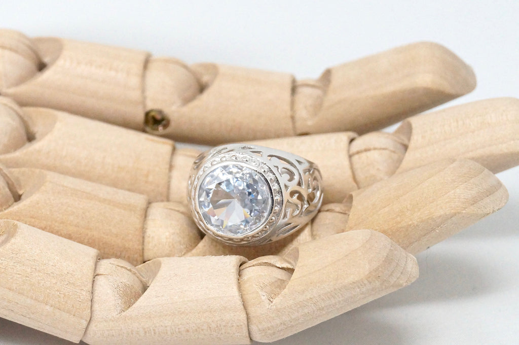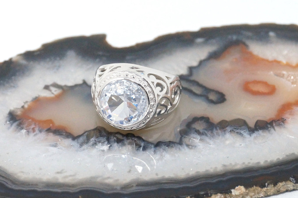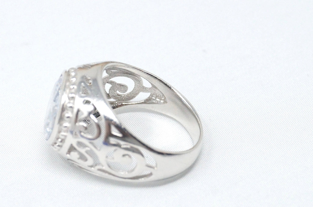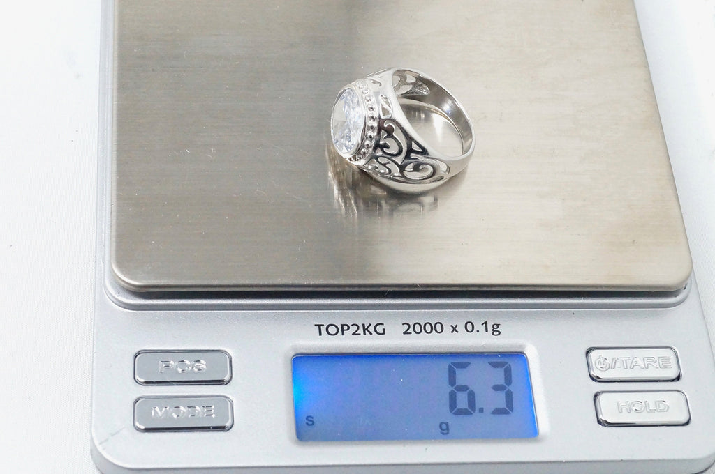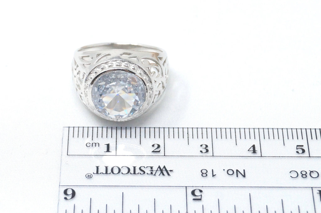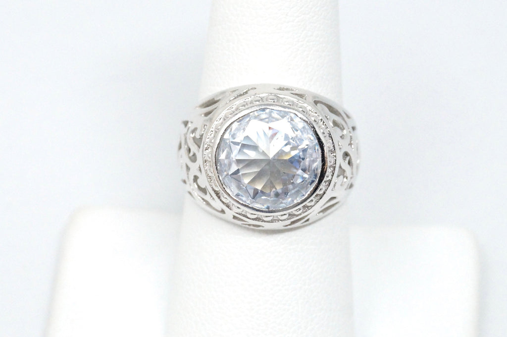 Vintage Art Deco Style Large Cz Cut Out Statement Ring Sterling Silver Sz 7.75
