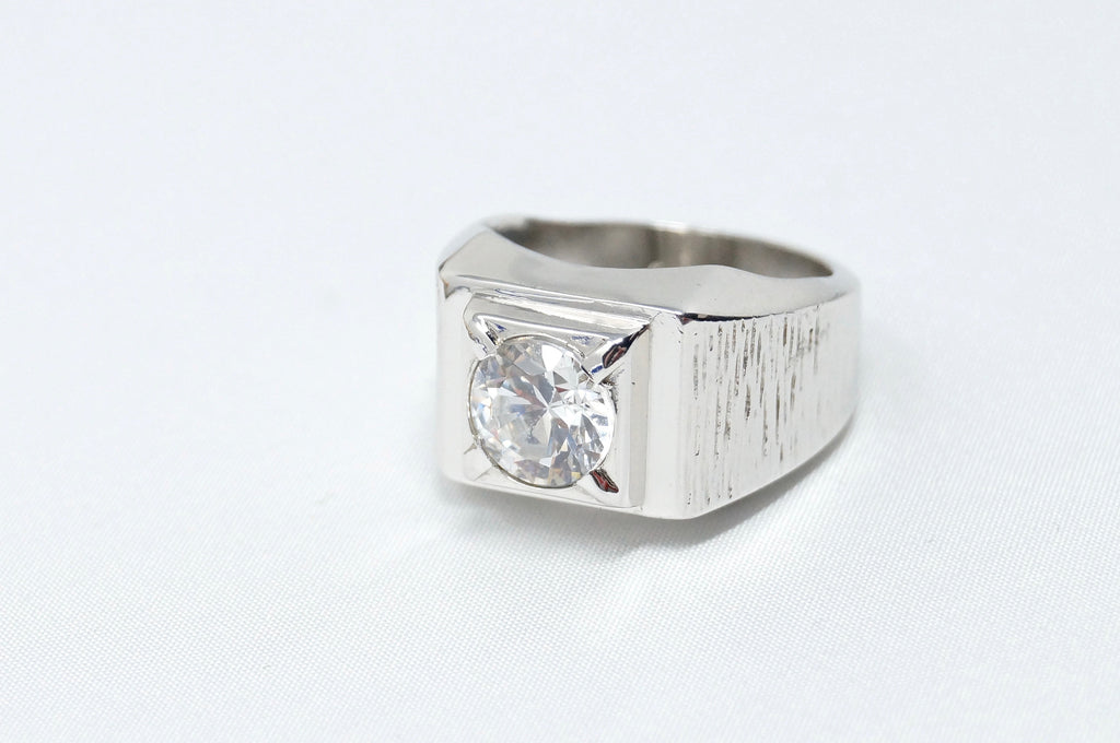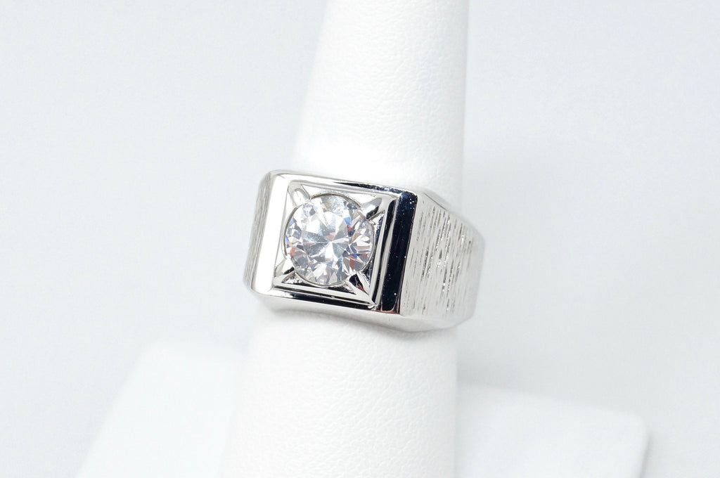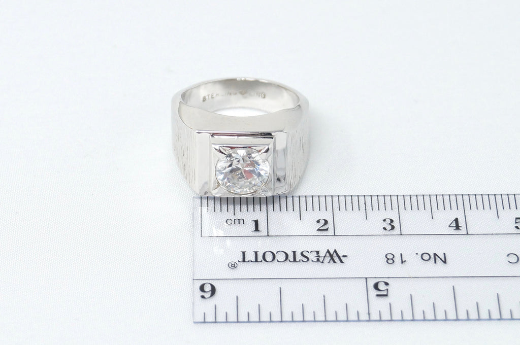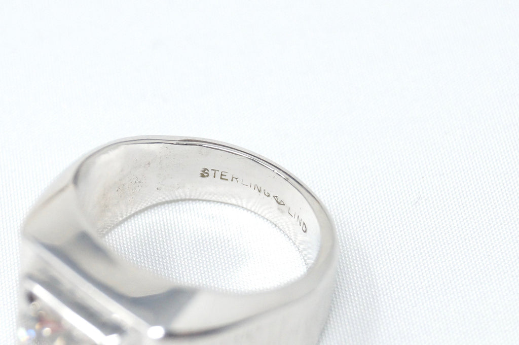Vintage Art Deco Style Large CZ Statement Ring Sterling Silver - Size 8