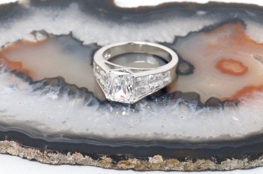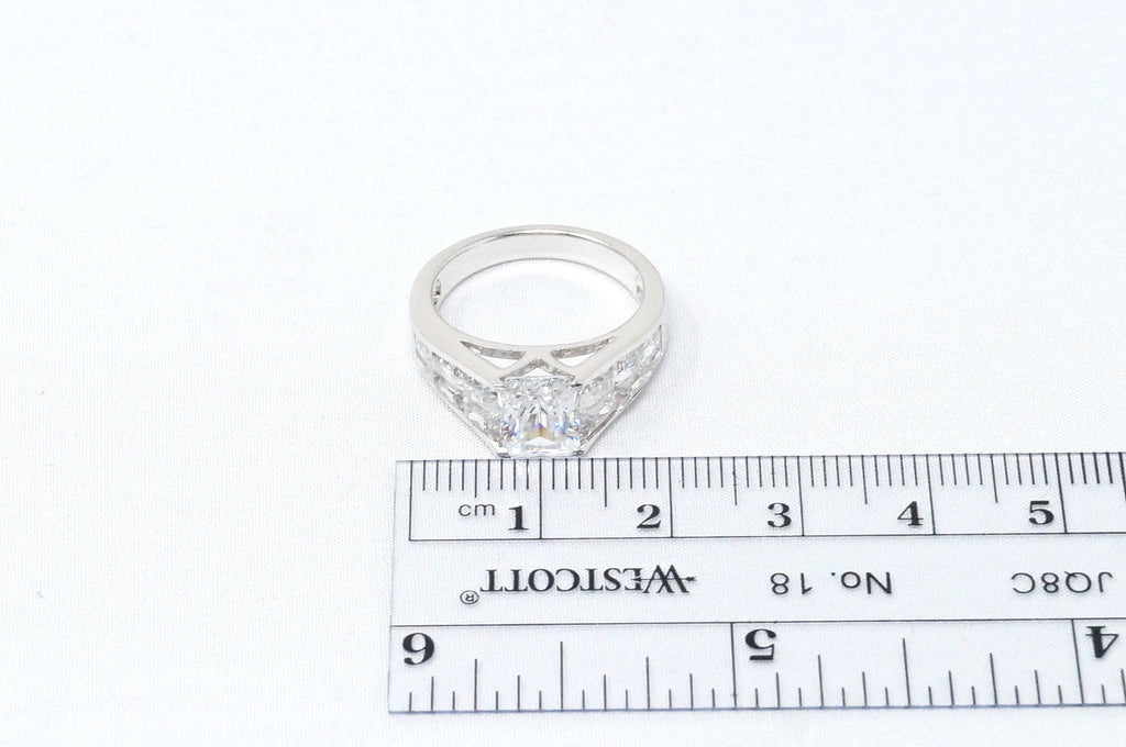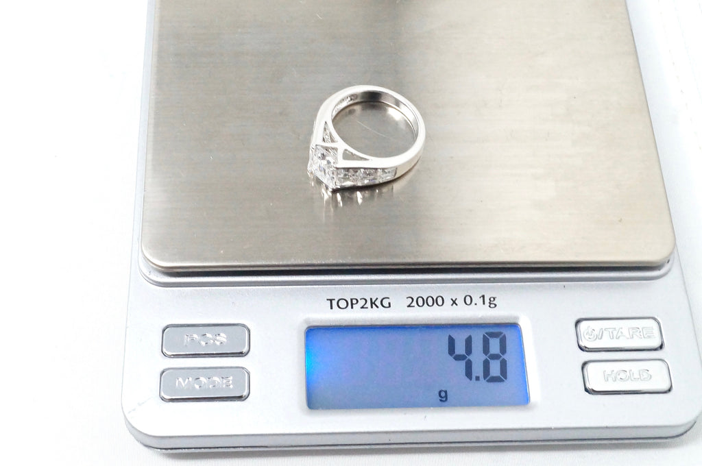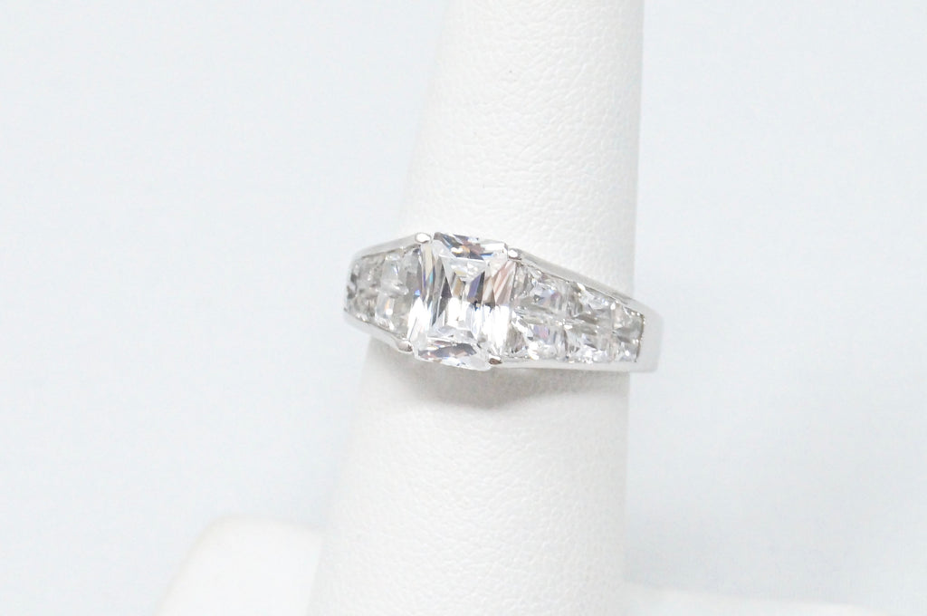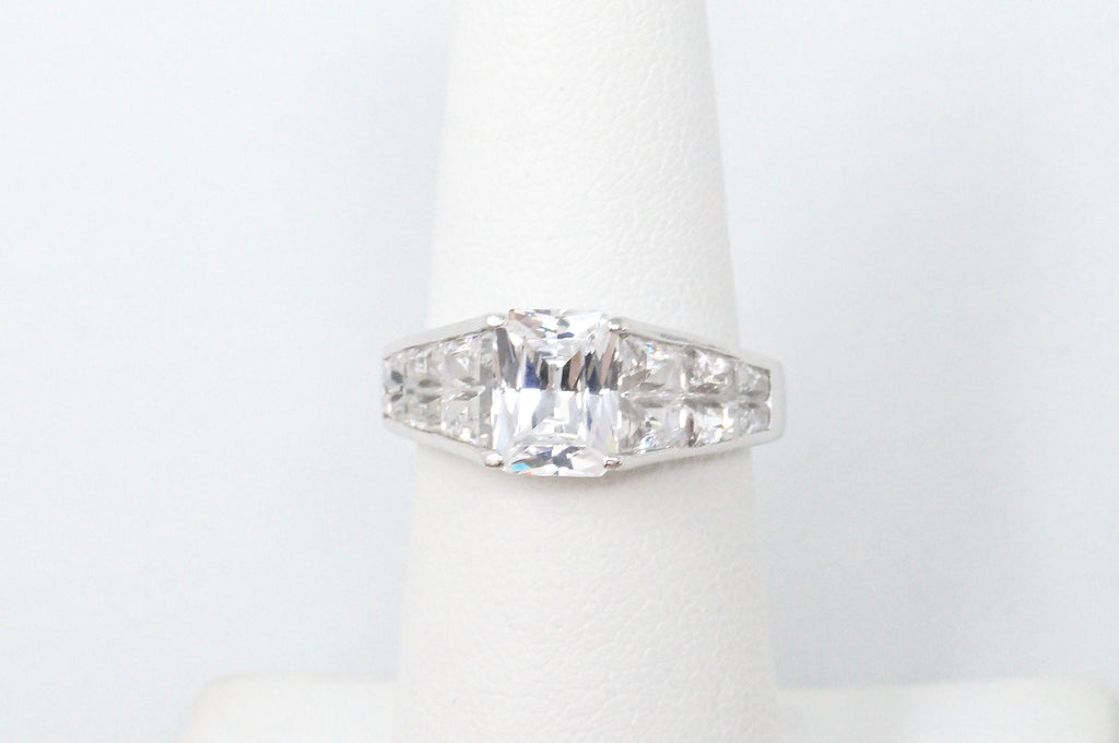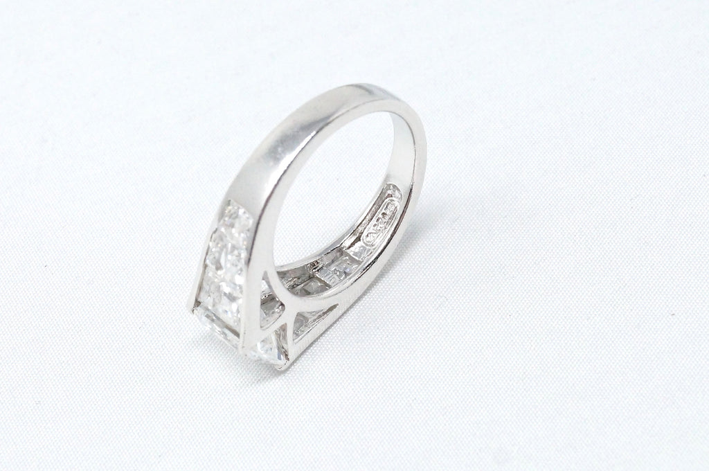 Vintage Art Deco Style Large Cz Sterling Silver Statement Ring - Size 6