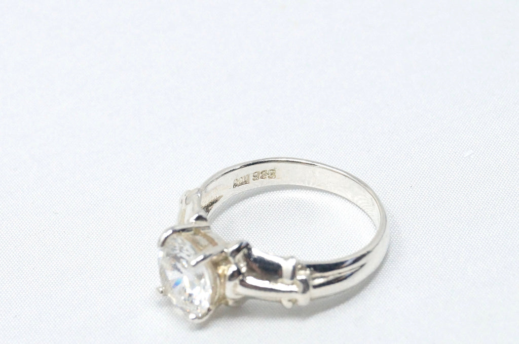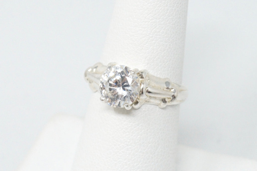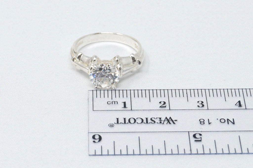 Vintage Art Deco Style Large Cz Sterling Silver Statement Ring - Size 6.75