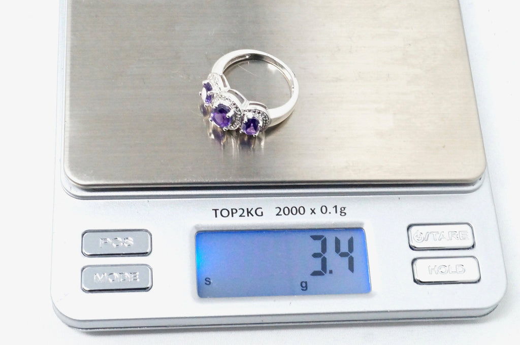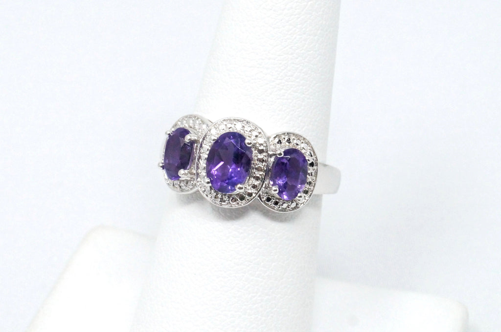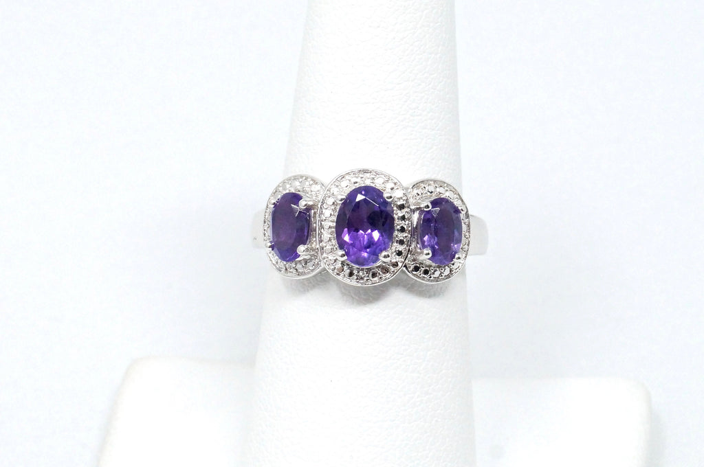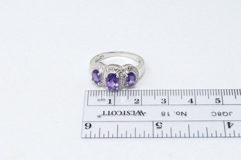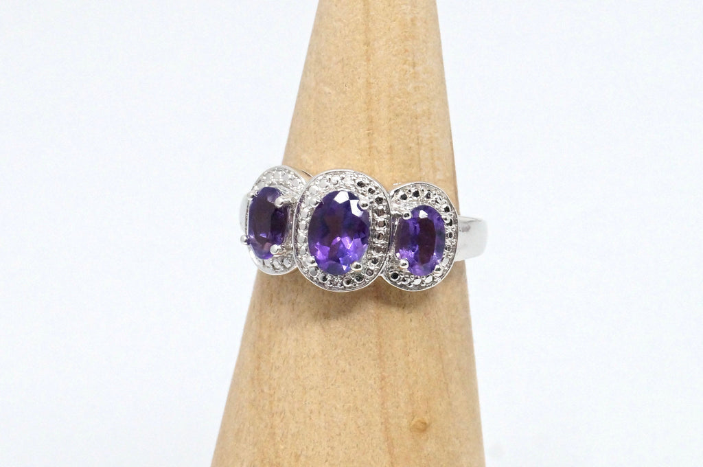 Vintage Art Deco Style Purple Amethyst Sterling Silver Ring - Size 6.75