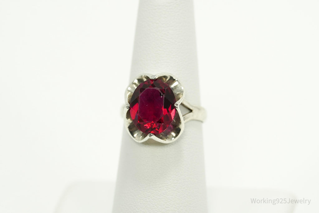 Vintage Art Glass Sterling Silver Ring - Size 6.75