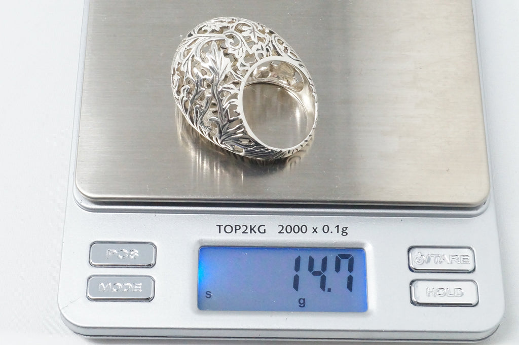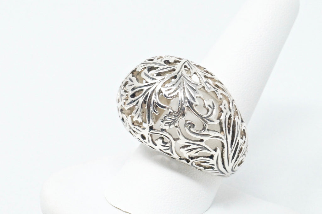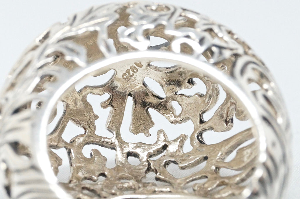 Vintage Art Nouveau Style Motif Floral Cut Out Ring Sterling Silver Sz 10