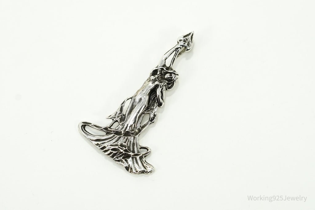 Vintage Art Nouveau Style Woman Sterling Silver Pendant 2"