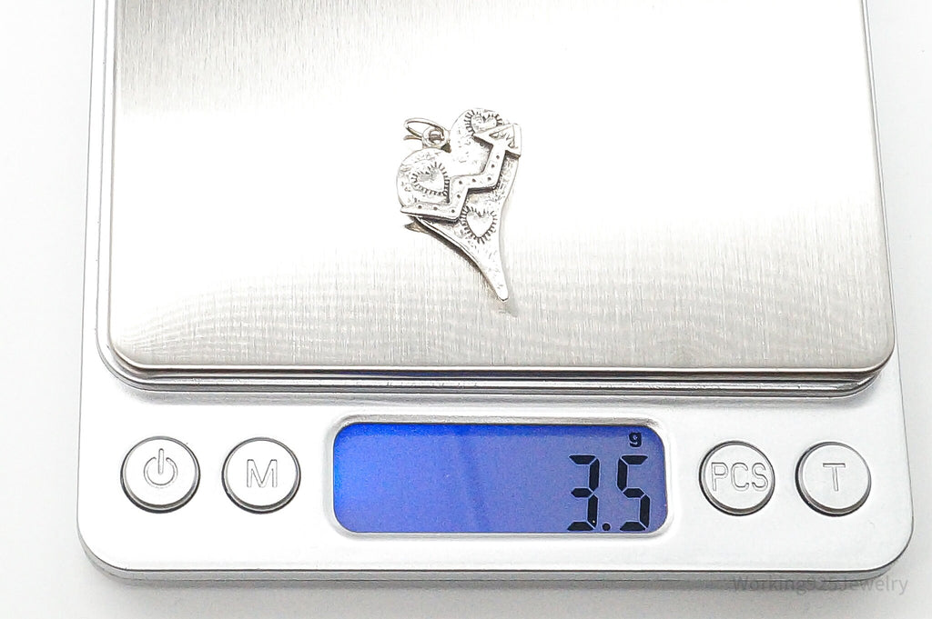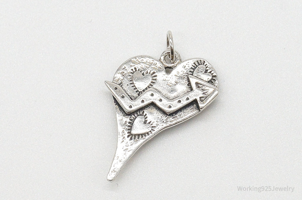 Vintage Artsy Heart Sterling Silver Pendant