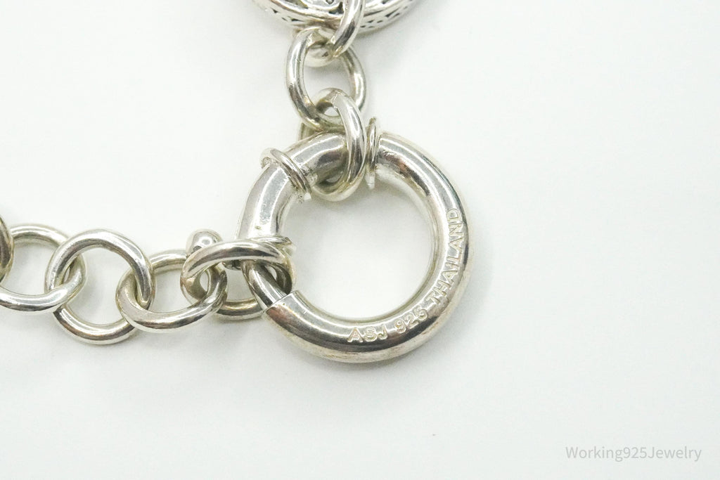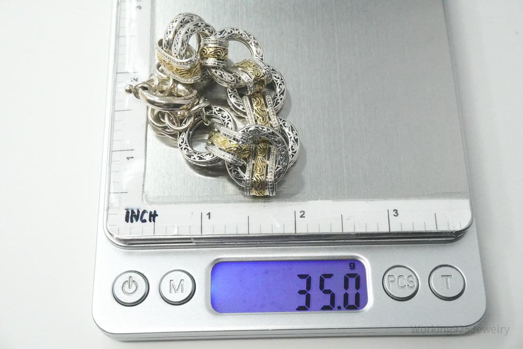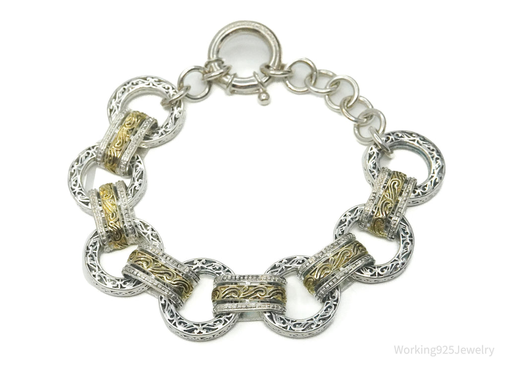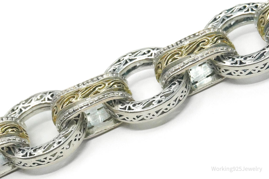 Vintage ASJ Filigree Scroll Design Large Link Gold Vermeil Sterling Silver Chain Bracelet 7 7/8"