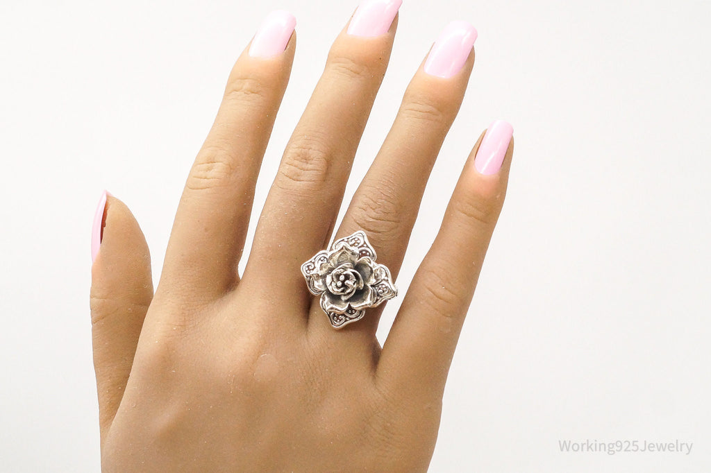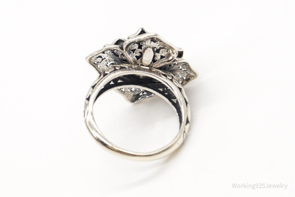 Vintage ATI 3D Flower Sterling Silver Ring - Size 7.25