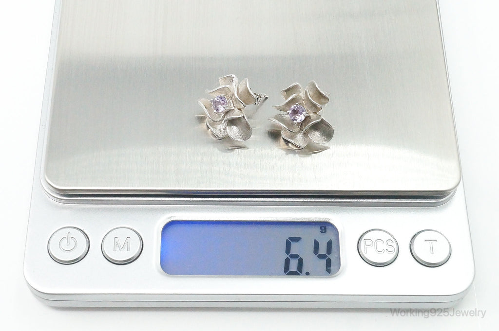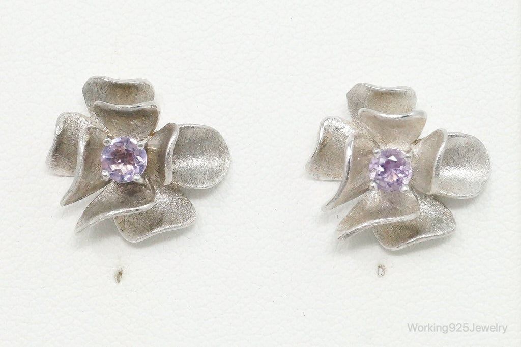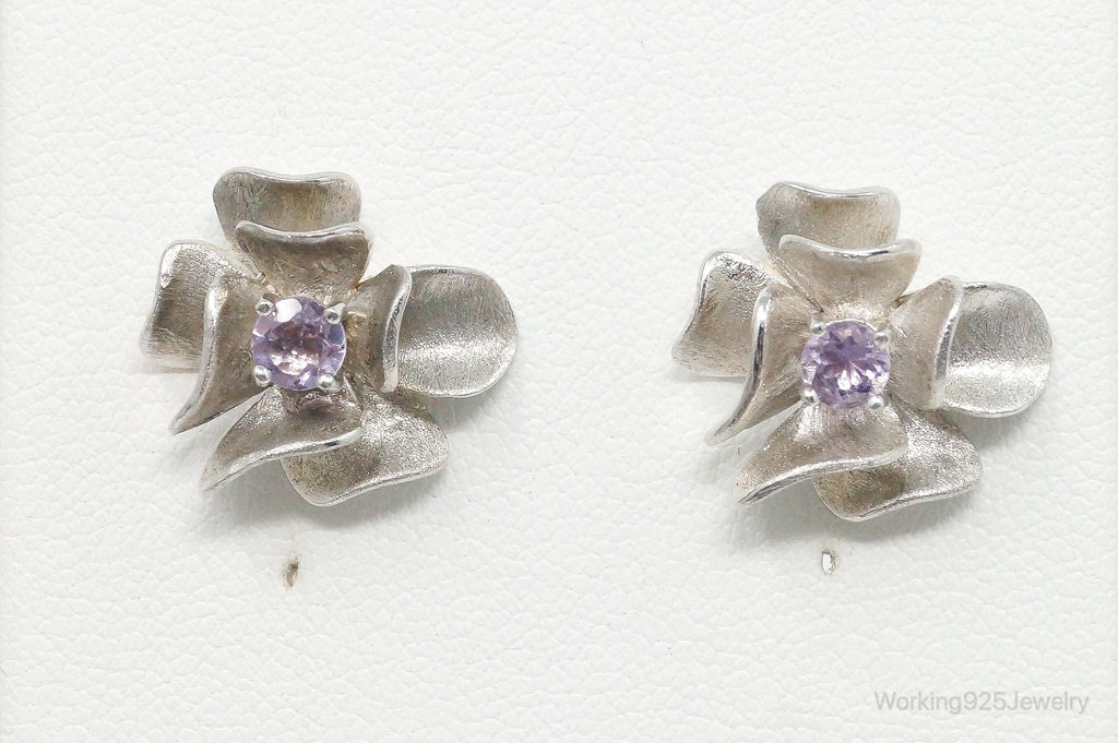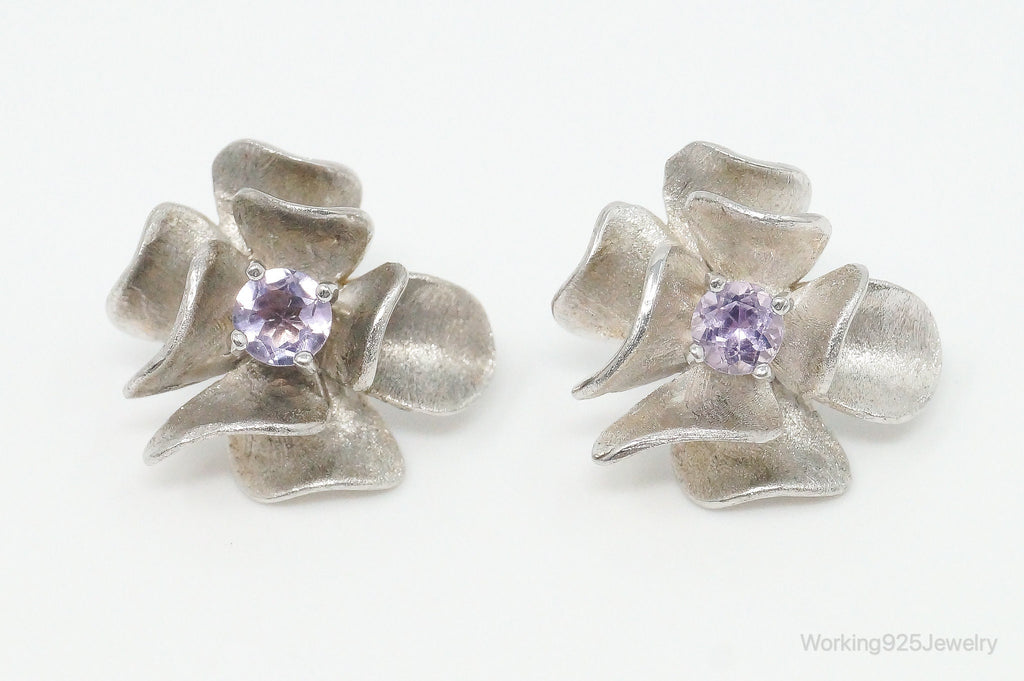 Vintage ATI Amethyst Flowers Sterling Silver Earrings