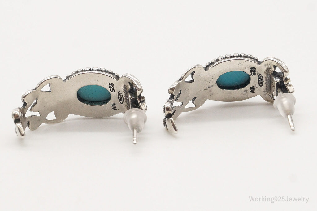 Vintage Avon Blue Turquoise Sterling Silver Hoop Earrings