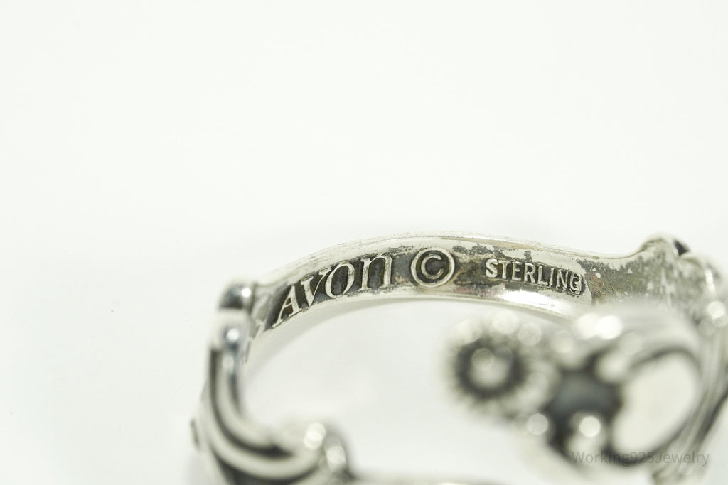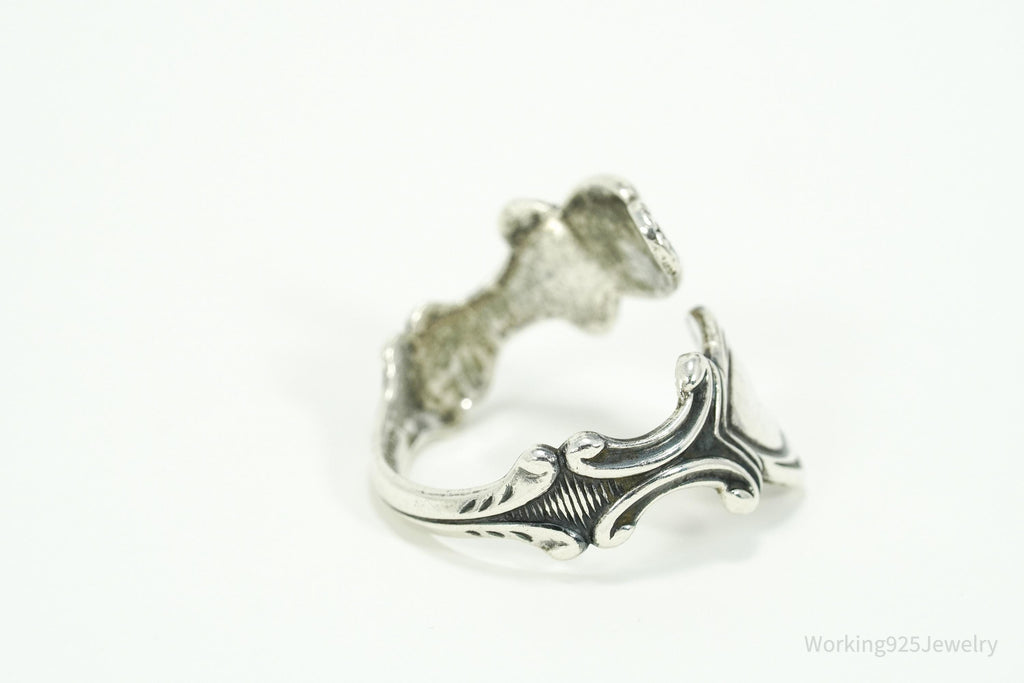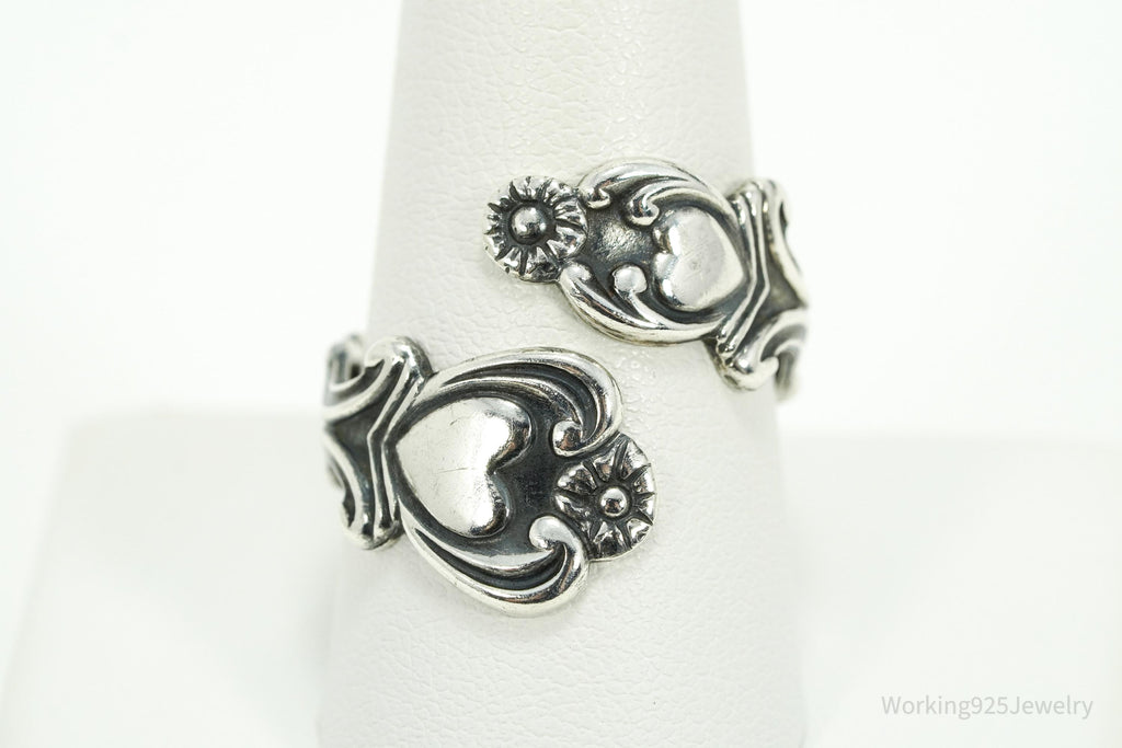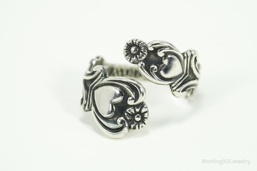 Vintage Avon Hearts & Flowers Sterling Silver Adjustable Wrap Spoon Ring - Size 10.25
