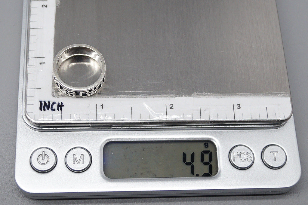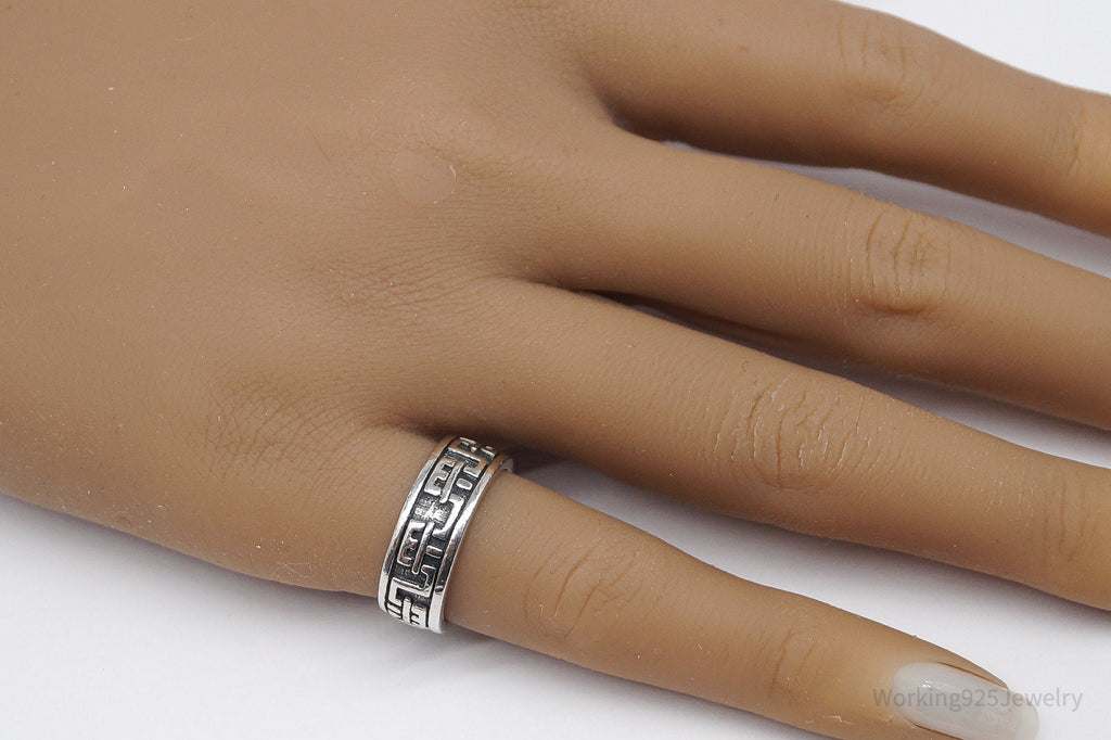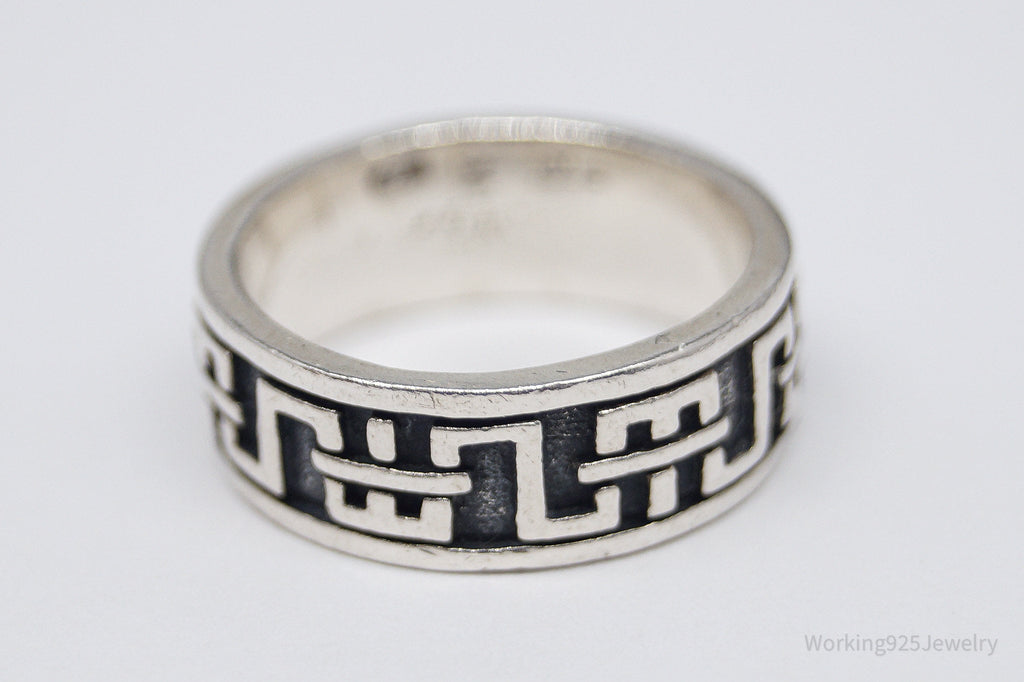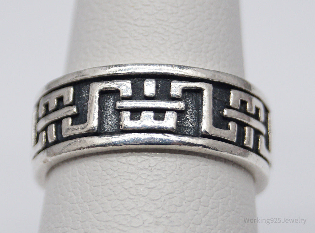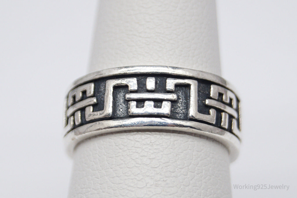 Vintage Aztec Motif Sterling Silver Band Ring - Size 5.5