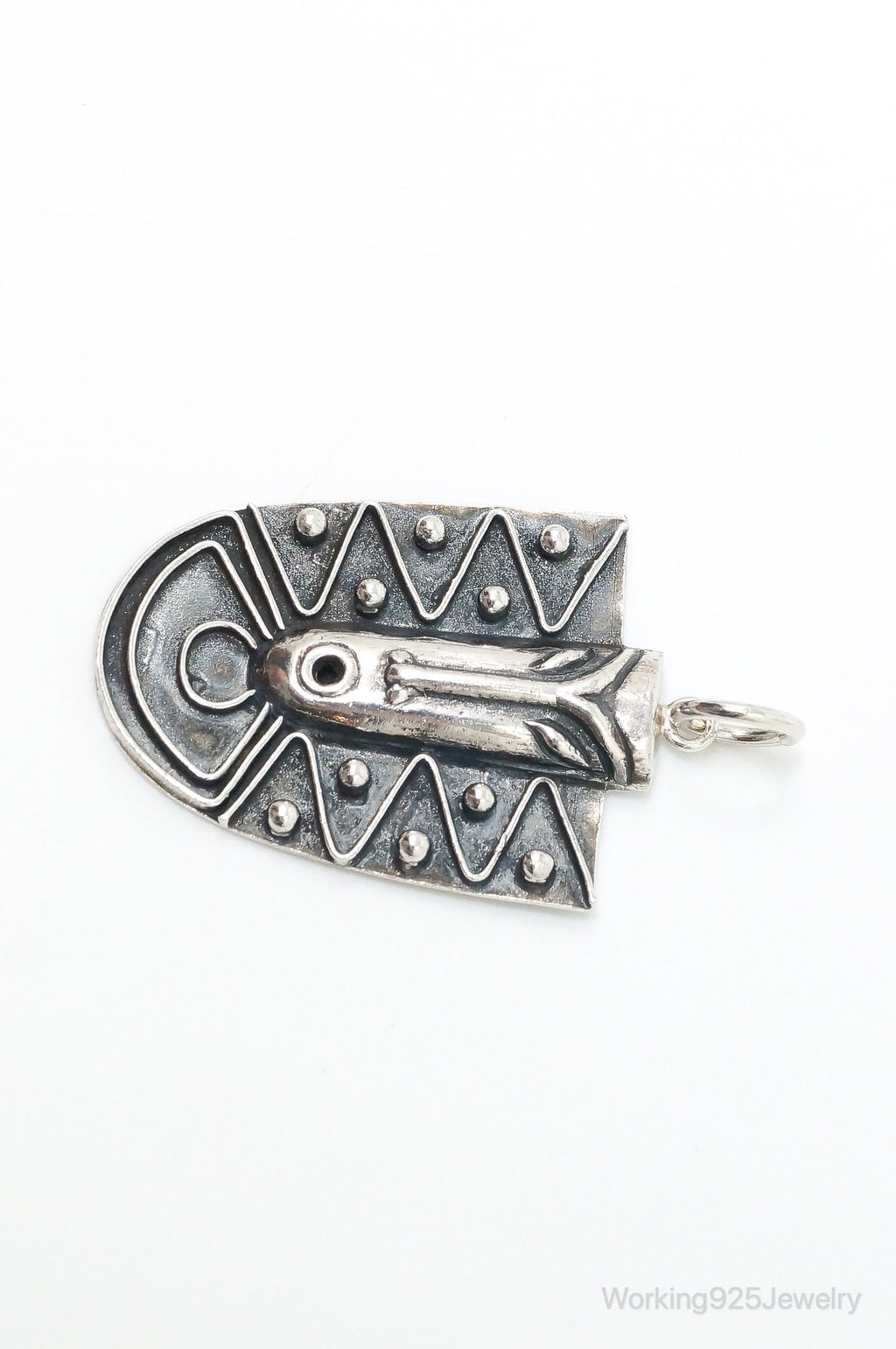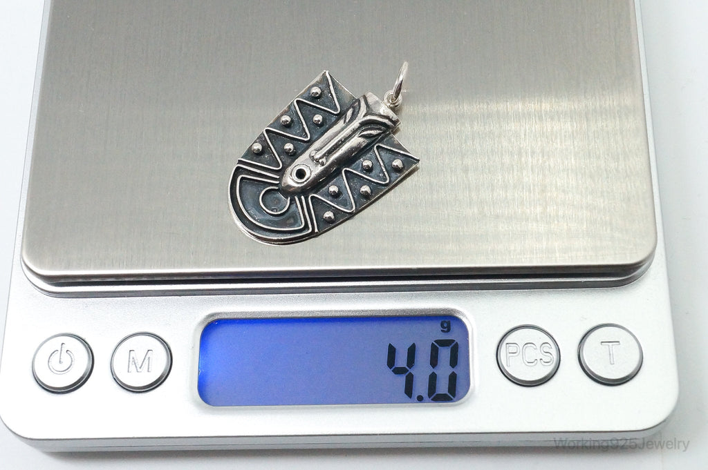 Vintage Aztec Style Mask Tribal Sterling Silver Necklace Pendant