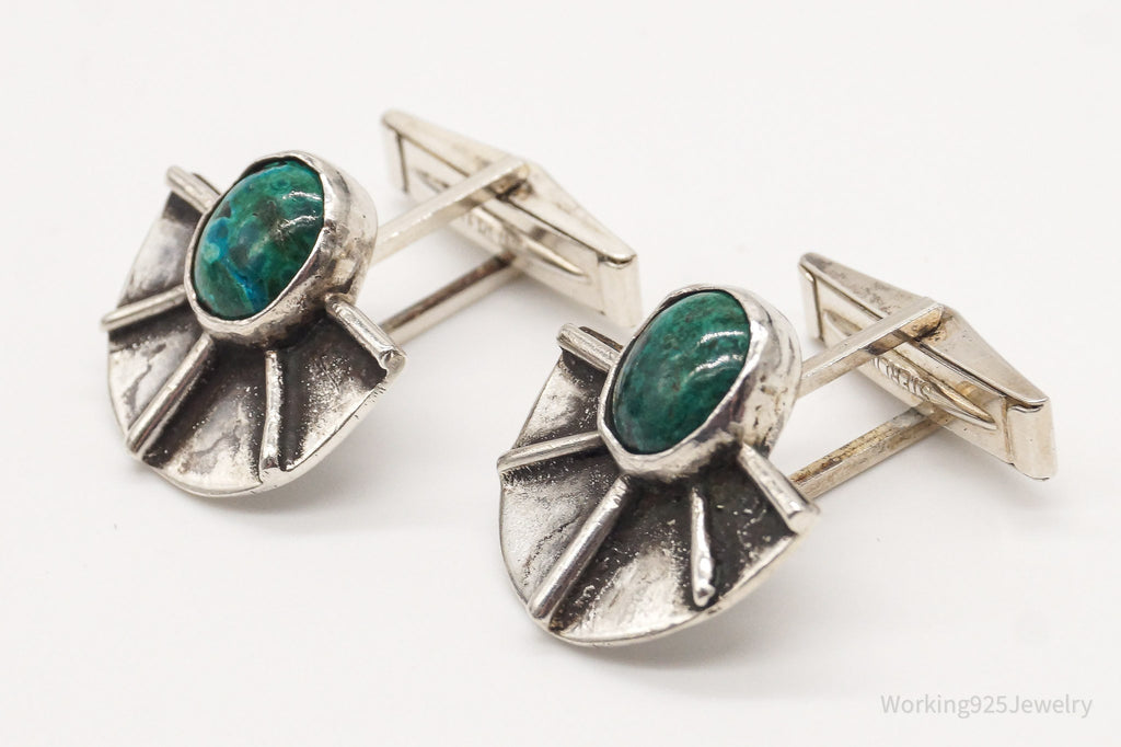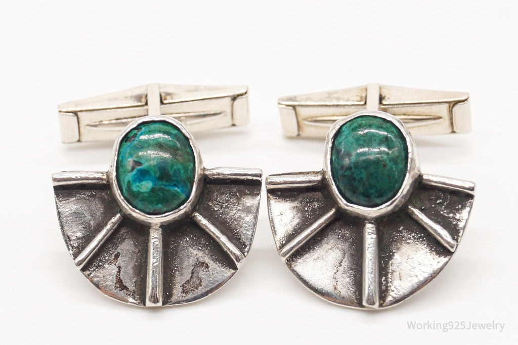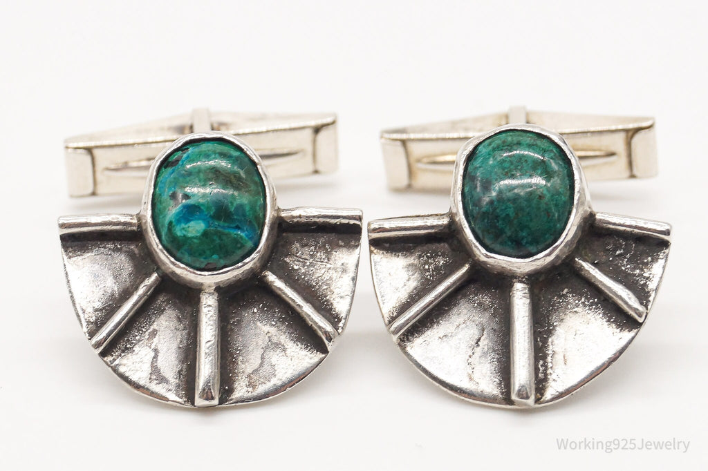 Vintage Azurite Modernist Sterling Silver Cufflinks