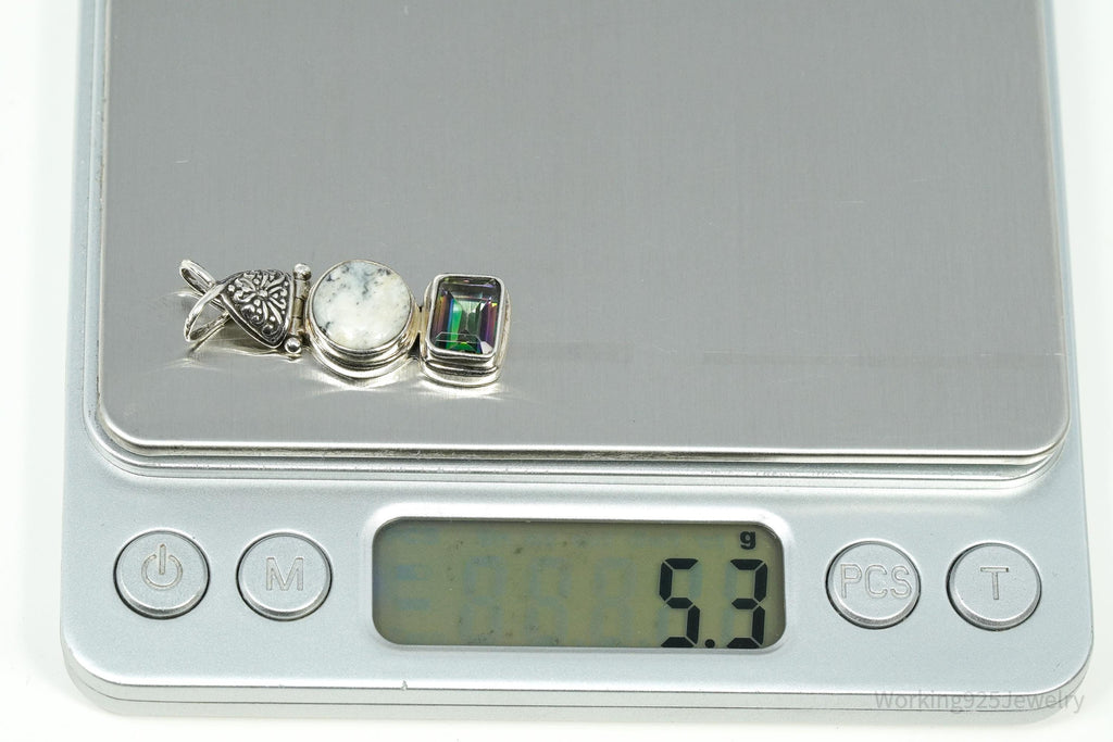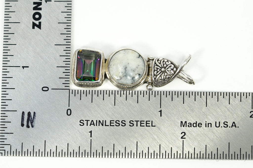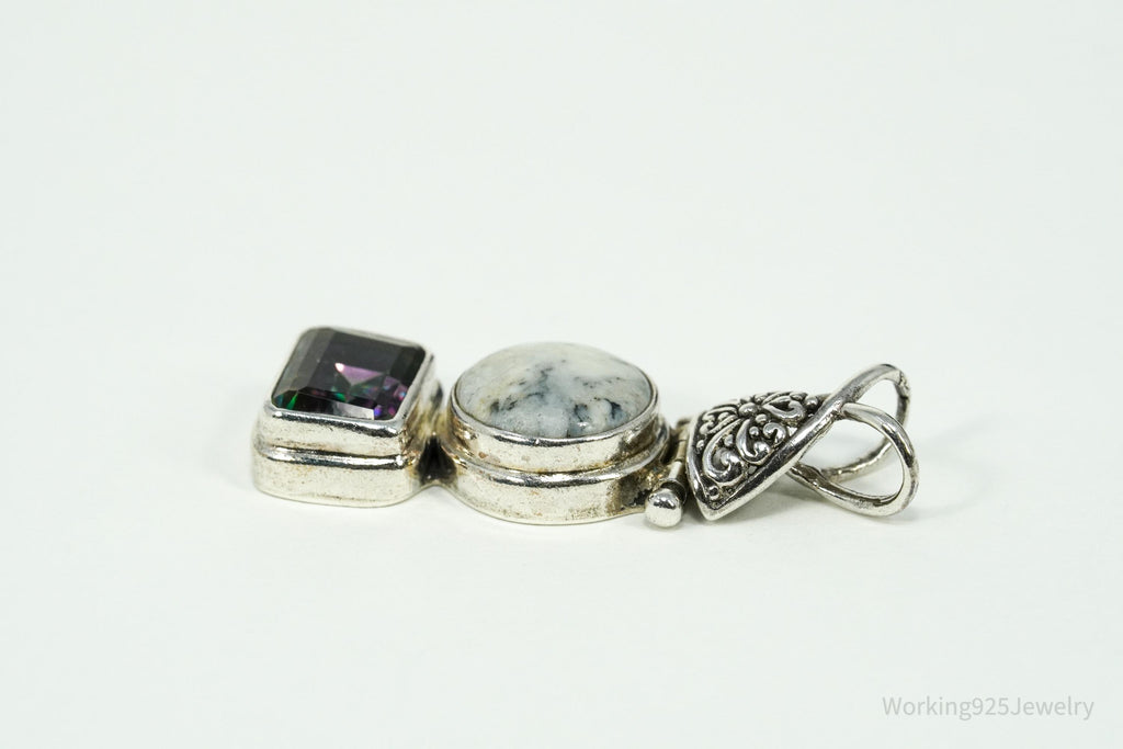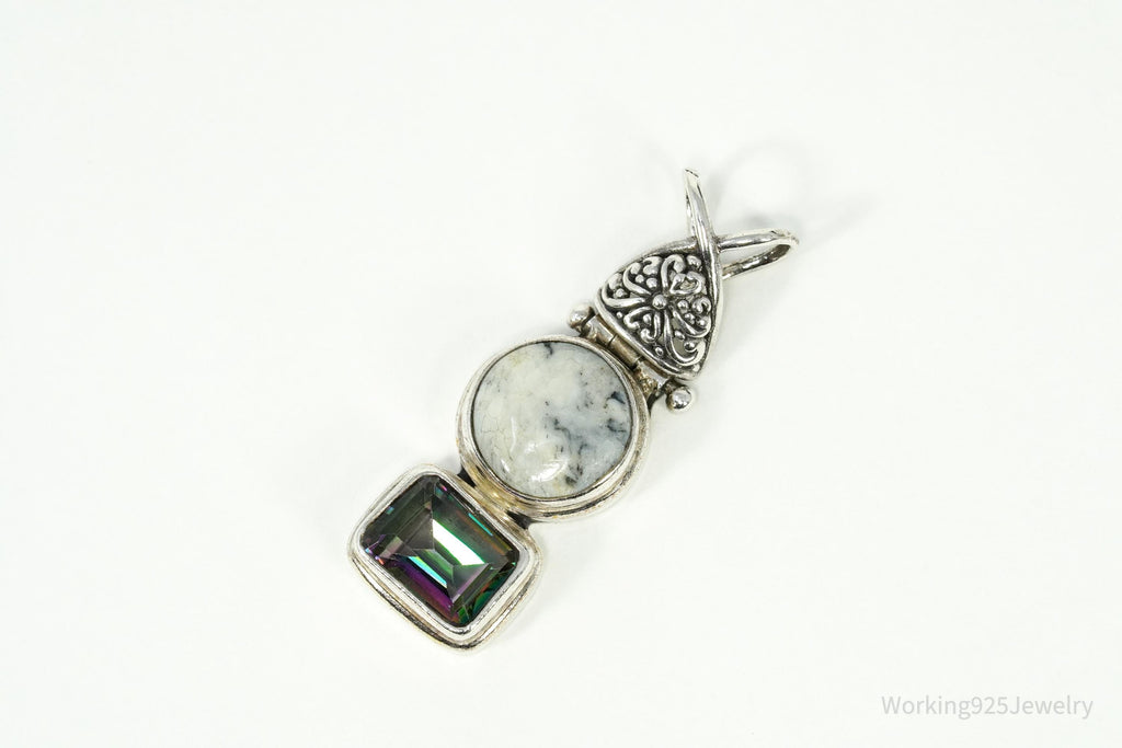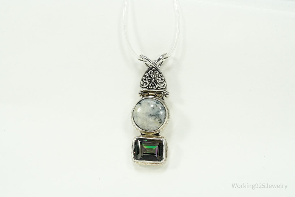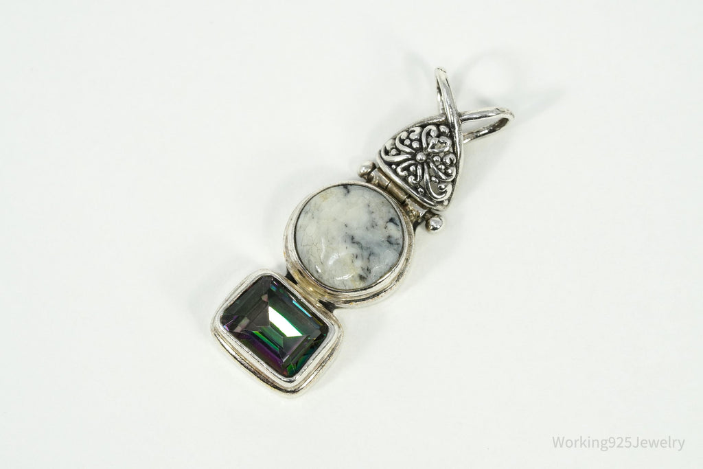 Vintage Bali Designer SARDA Mystic Topaz & Granite Sterling Silver Pendant 1 3/8"