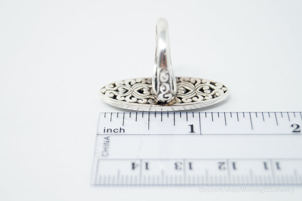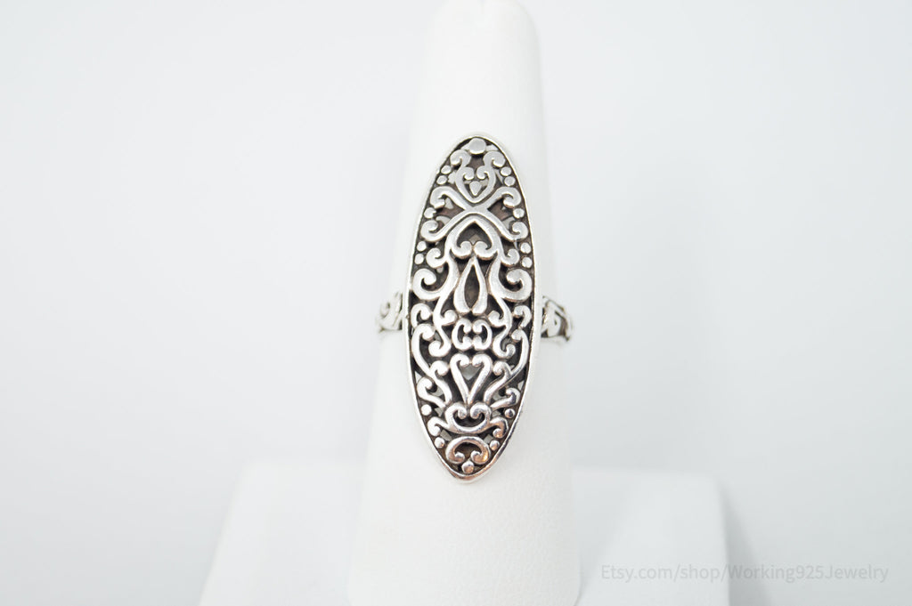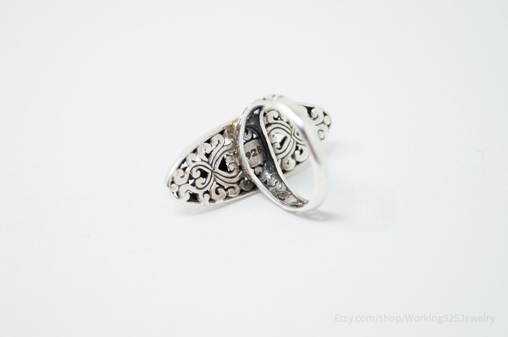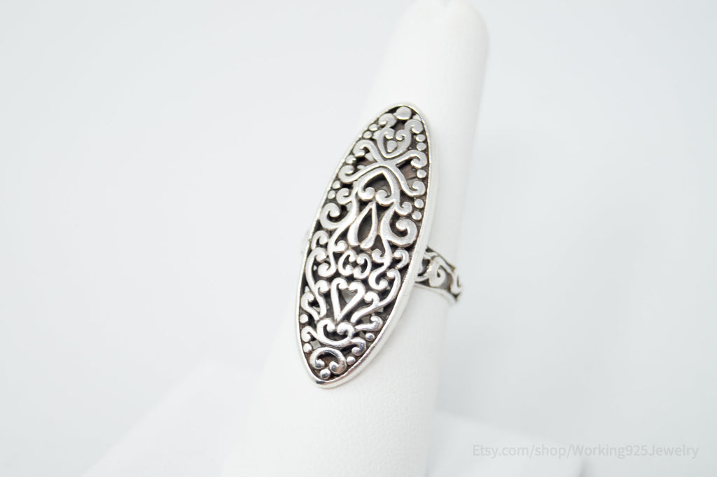 Vintage Bali Style Scroll Swirls Filigree Sterling Silver Band Ring - Size 7