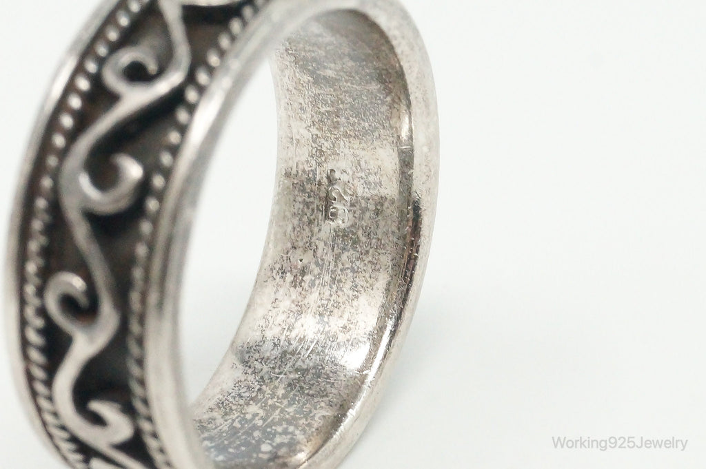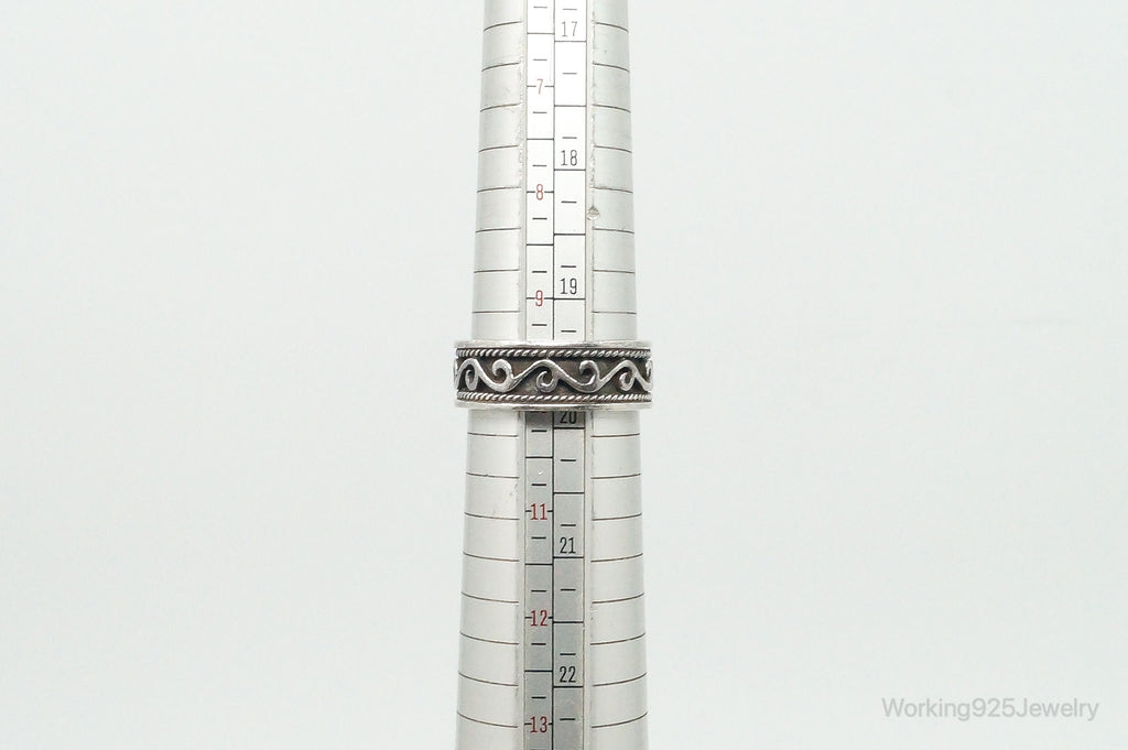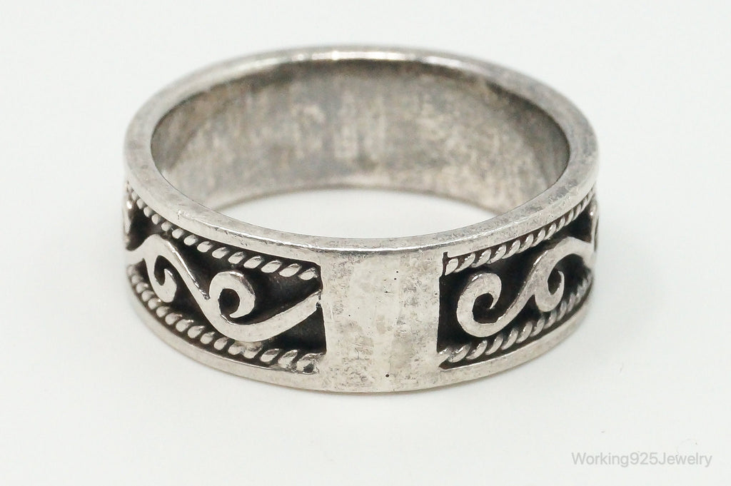 Vintage Bali Style Scroll Swirls Sterling Silver Band Ring - Size 8