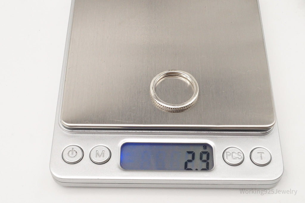 Ring Listings: It is sometimes difficult to determine how a ring will fit without being able to try it on. I always recommend taking your favorite ring to a local jeweler and comparing the way that it sits on a mandrel (ring sizer) with the pictures in the listings prior to purchase. Sometimes wide band rings fit a little differently and I always want my customers to be 100% happy with their purchases! Please let me know if I can help by offering more pictures for size comparison.