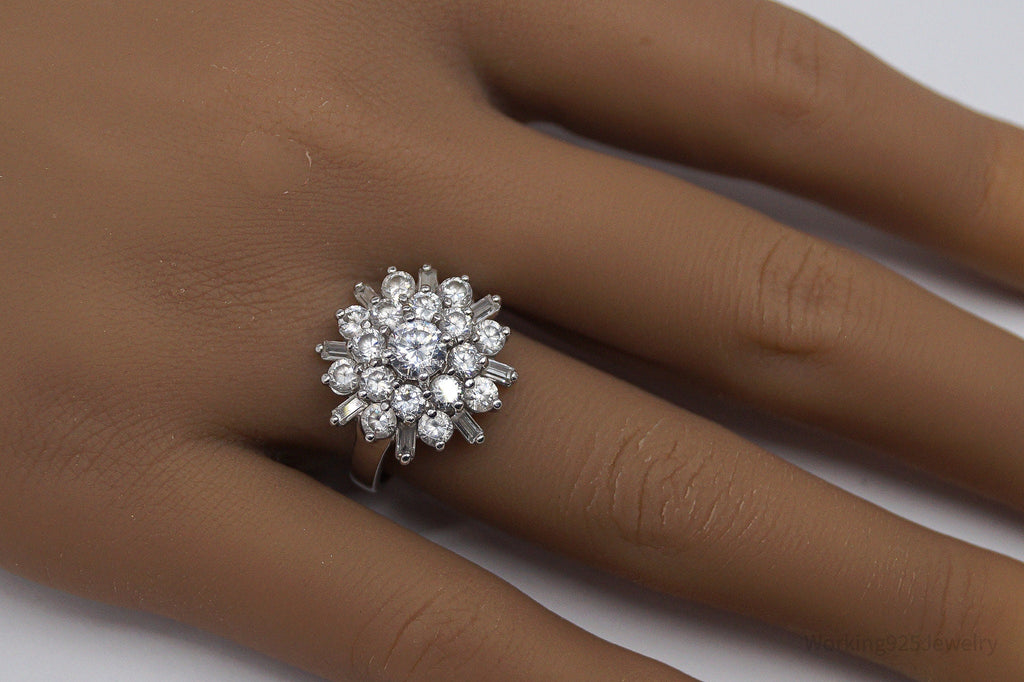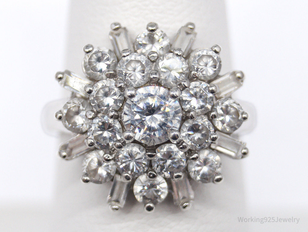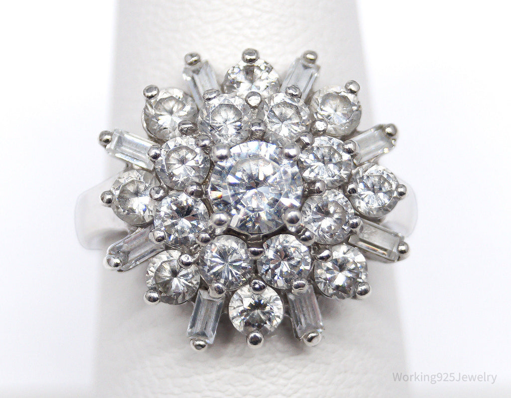 Vintage Ballerina Cluster Cubic Zirconia Sterling Silver Ring - Size 7.25