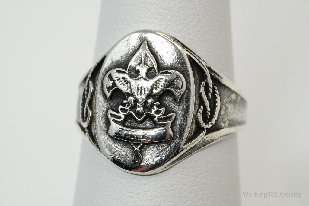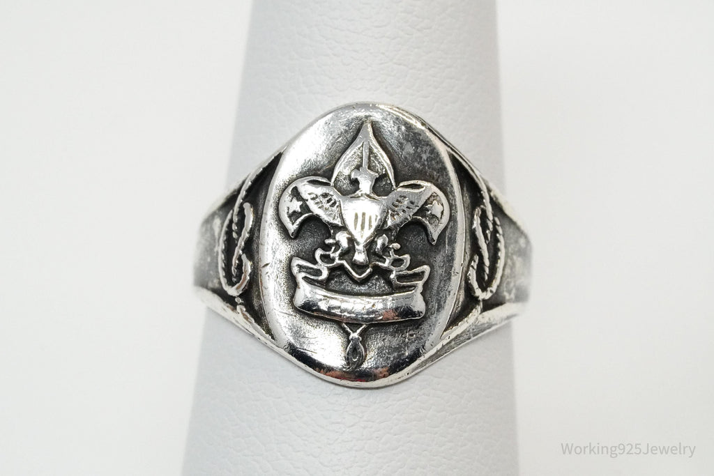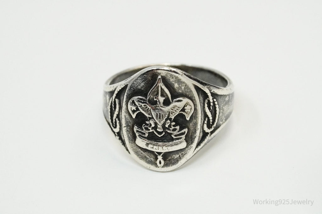 Vintage "Be Prepared" Eagle Scout Sterling Silver Ring - Size 5.75
