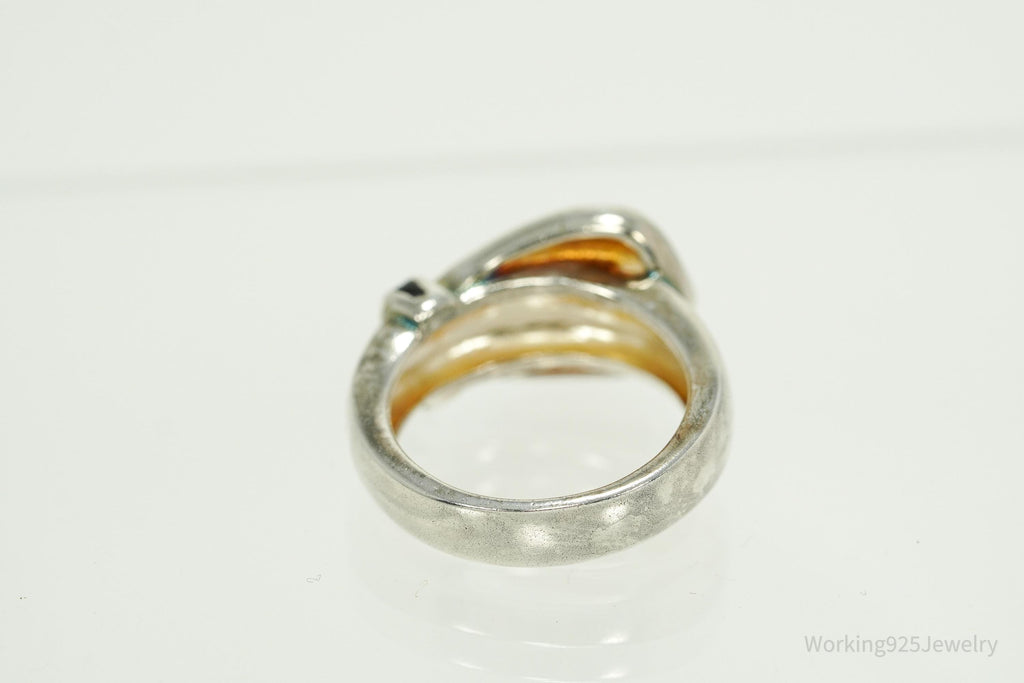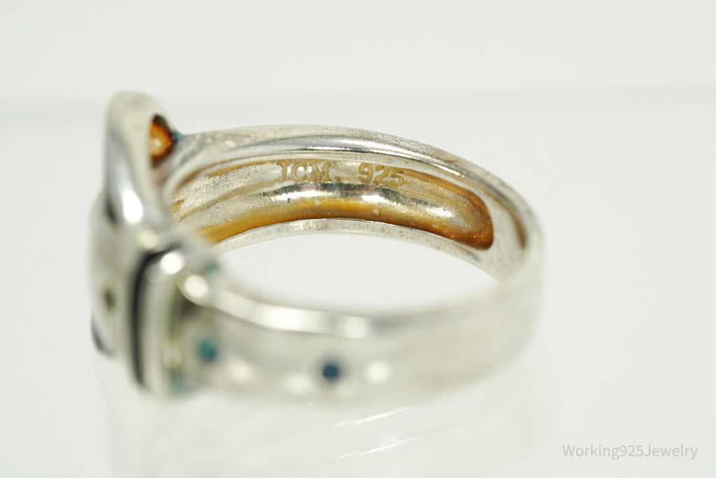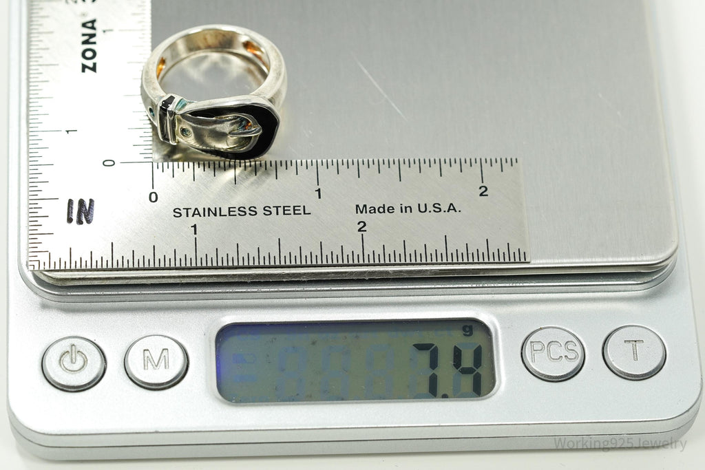 Vintage Belt Buckle Black Enamel Sterling Silver Ring - Size 7.25