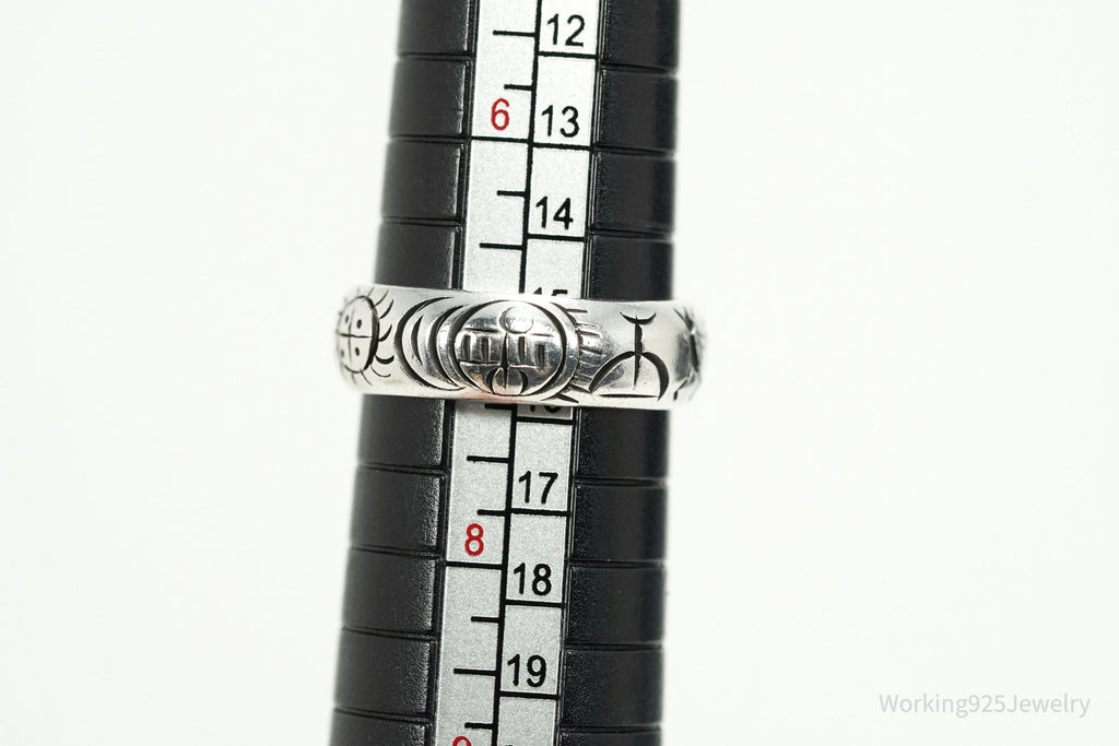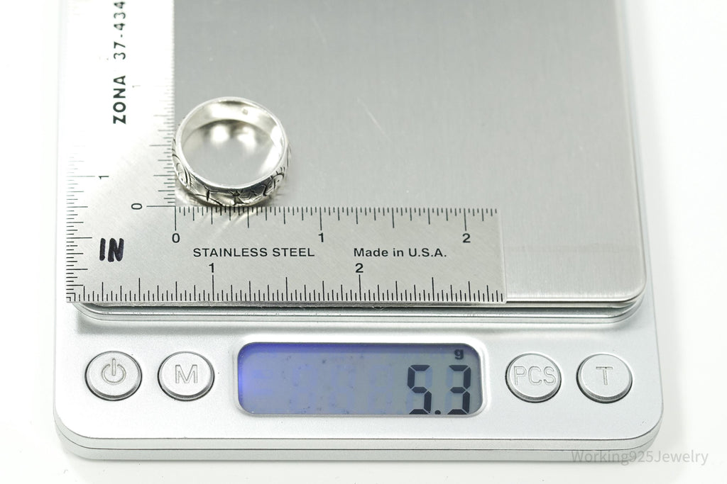 Ring Listings: It is sometimes difficult to determine how a ring will fit without being able to try it on. I always recommend taking your favorite ring to a local jeweler and comparing the way that it sits on a mandrel (ring sizer) with the pictures in the listings prior to purchase. Sometimes wide band rings fit a little differently and I always want my customers to be 100% happy with their purchases! Please let me know if I can help by offering more pictures for size comparison.