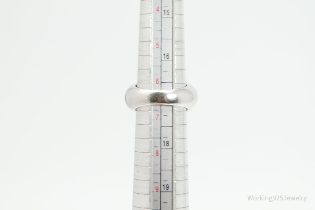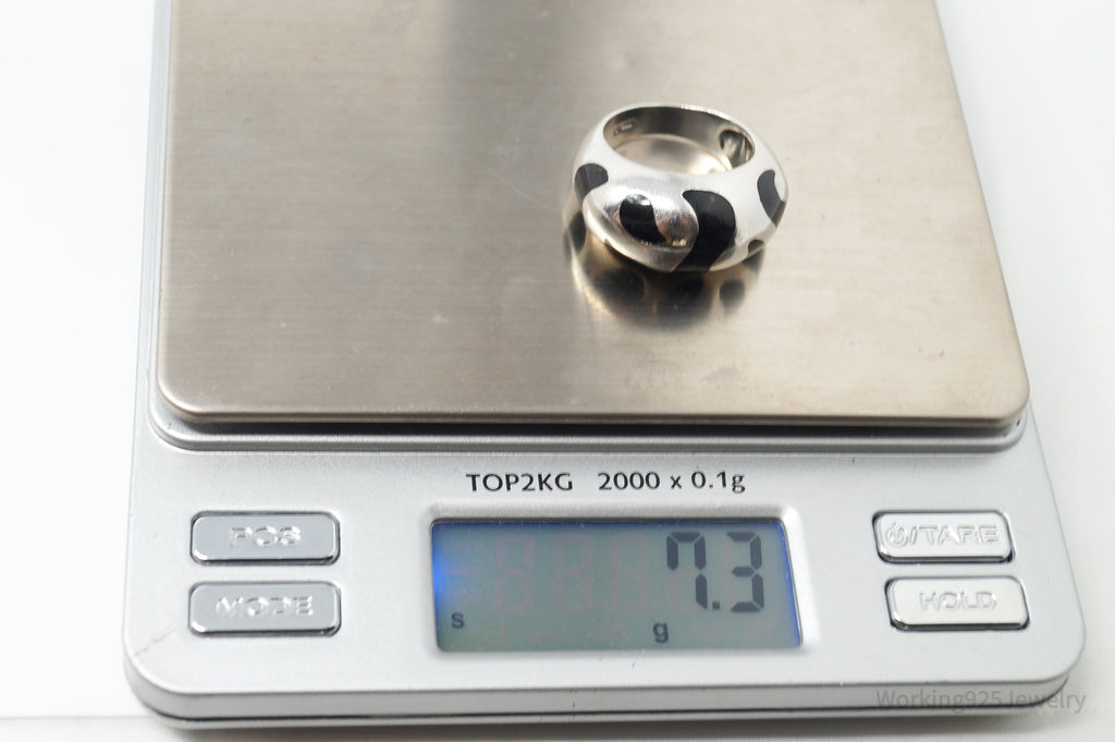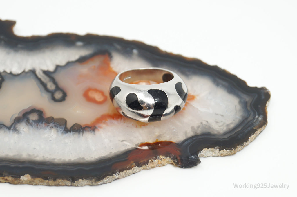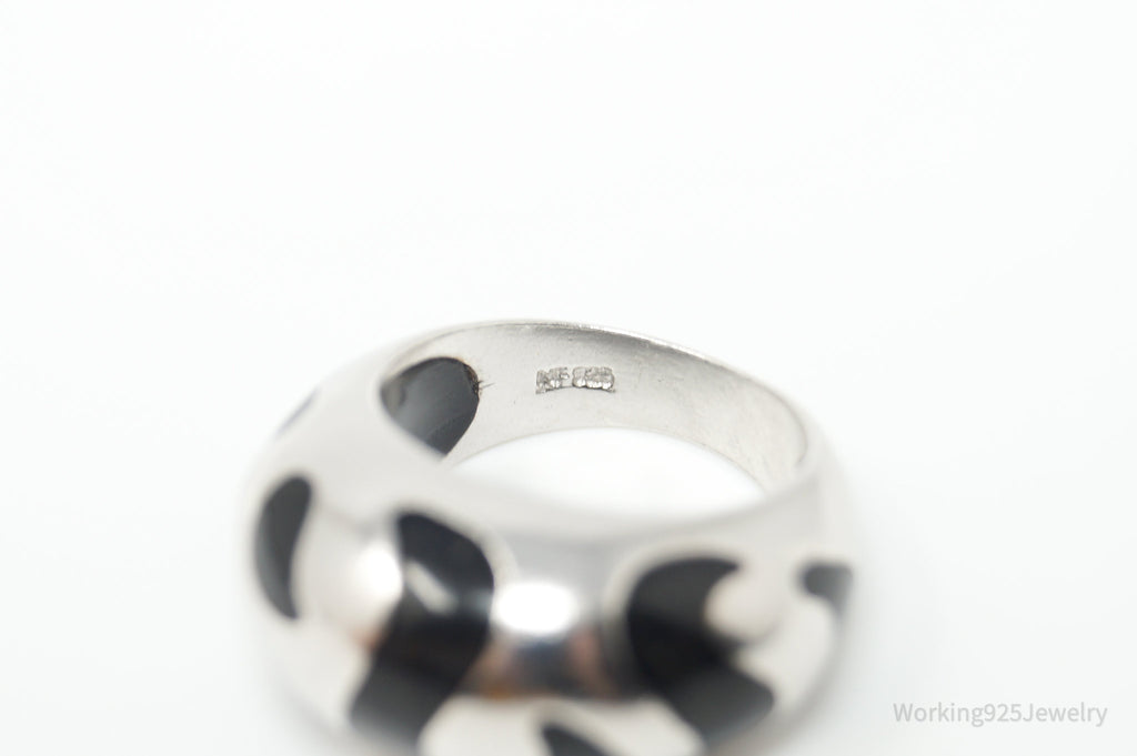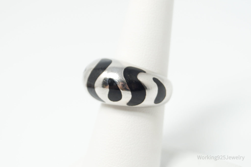 Vintage Black Enamel Tiger Stripe Design Sterling Silver Ring - Size 6.5