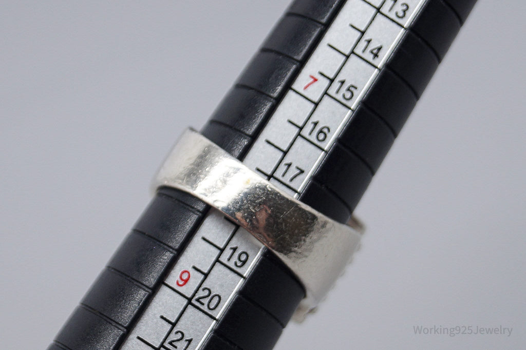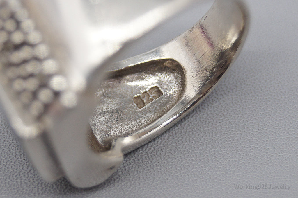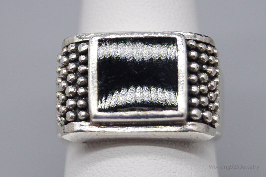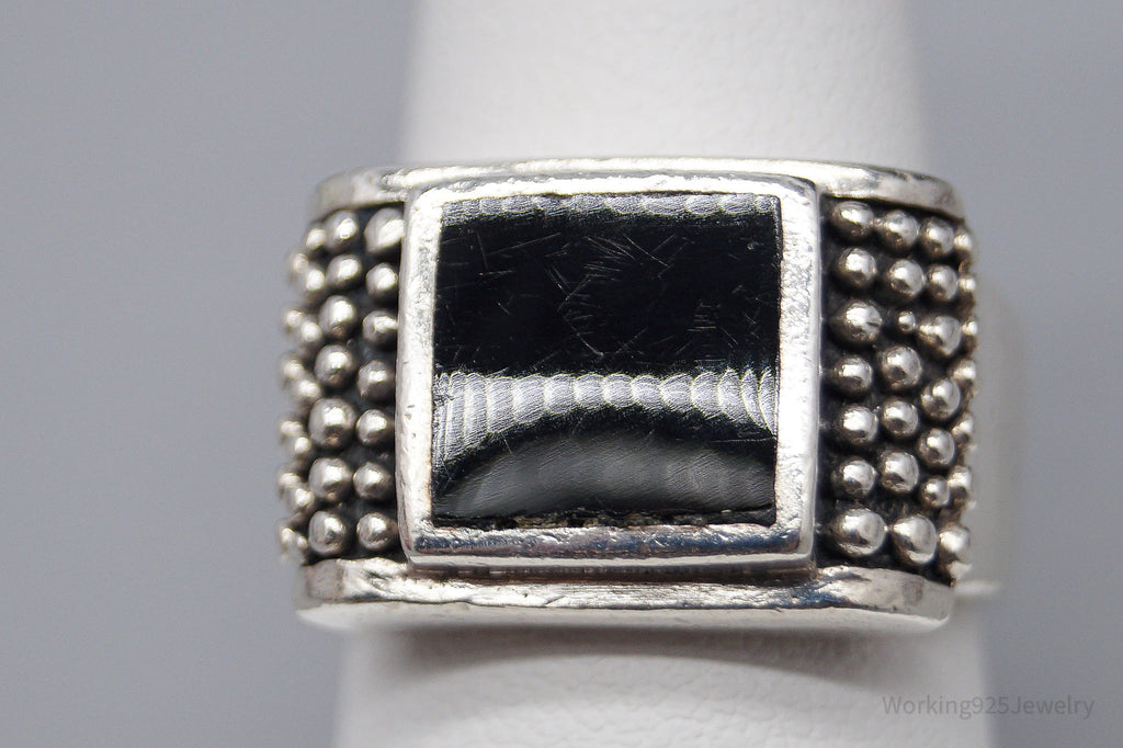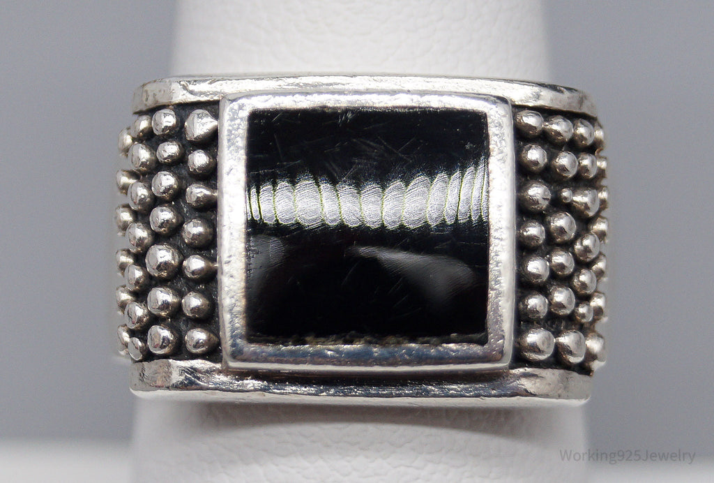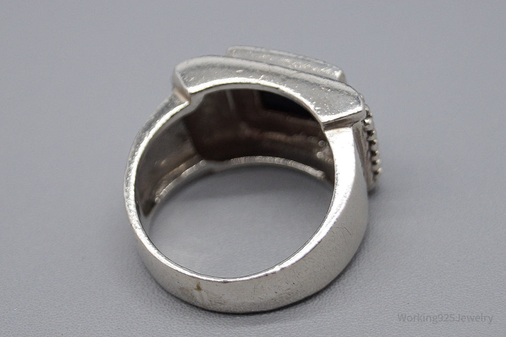 Vintage Black Onyx Modernist Style Sterling Silver Ring - Size 8