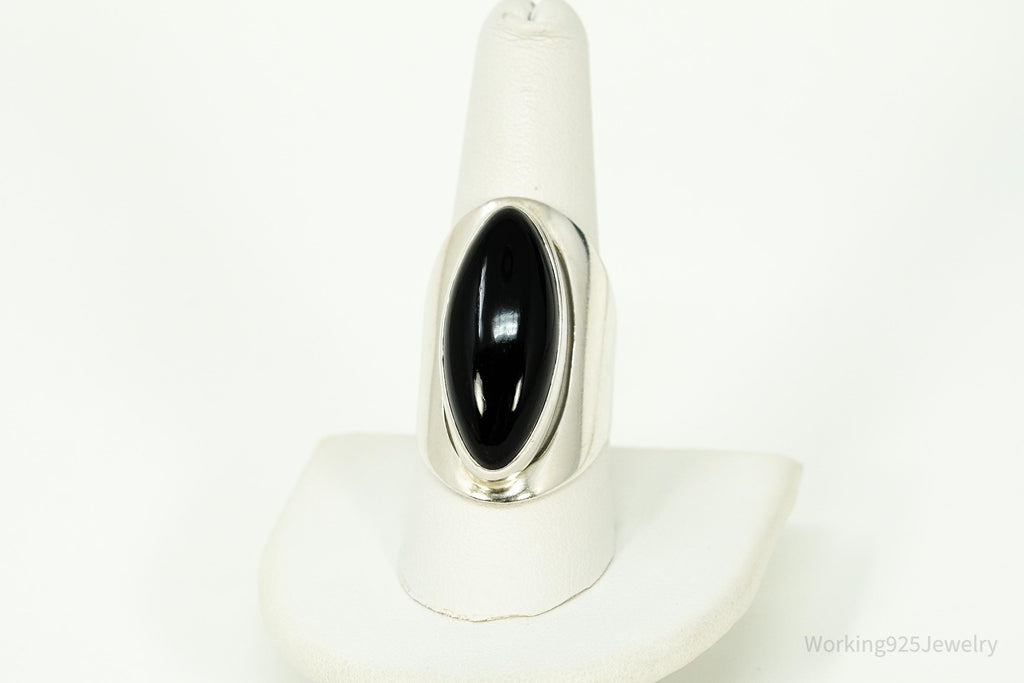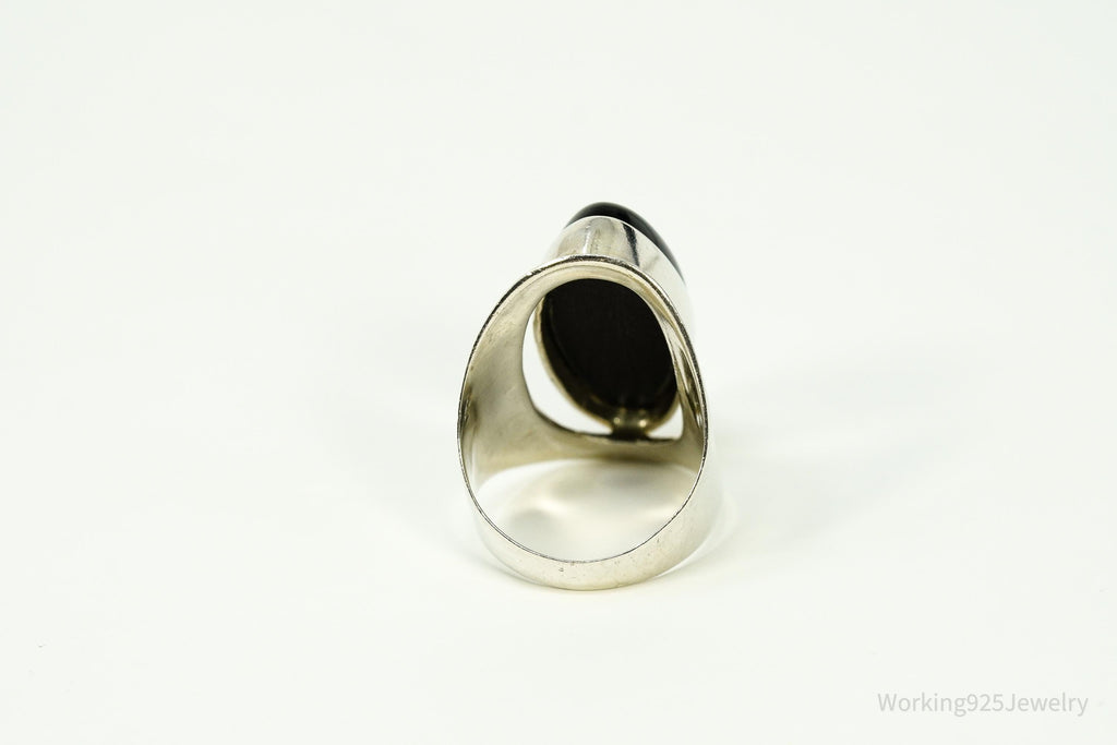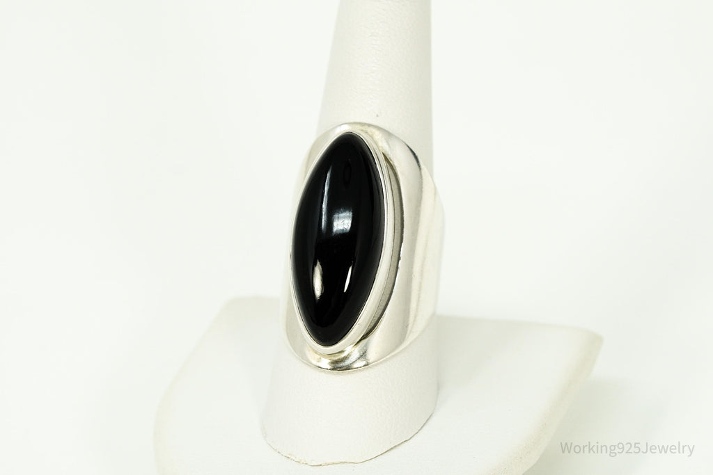 Vintage Black Onyx Modernist Style Sterling Silver Ring - Size 9.25