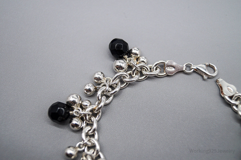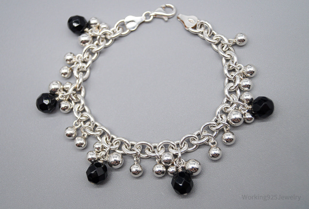 Vintage Black Onyx Sterling Silver Bracelet - 7 1/8"