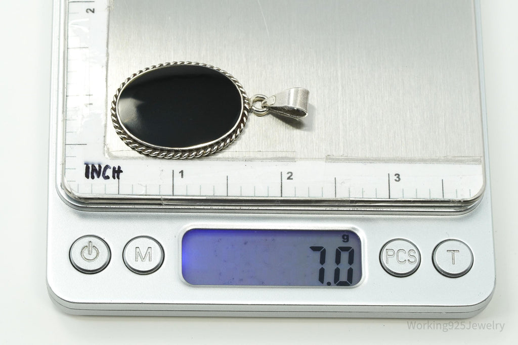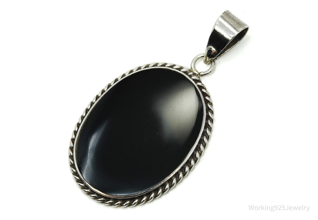 Vintage Black Onyx Sterling Silver Necklace Pendant