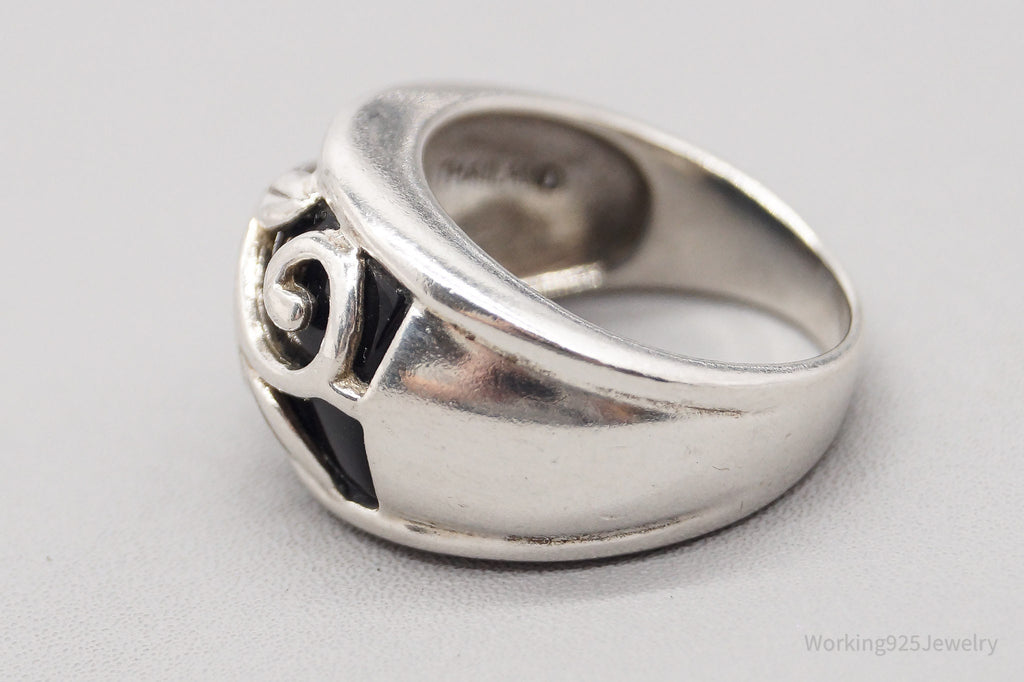 Vintage Black Onyx Sterling Silver Ring - Size 6.25