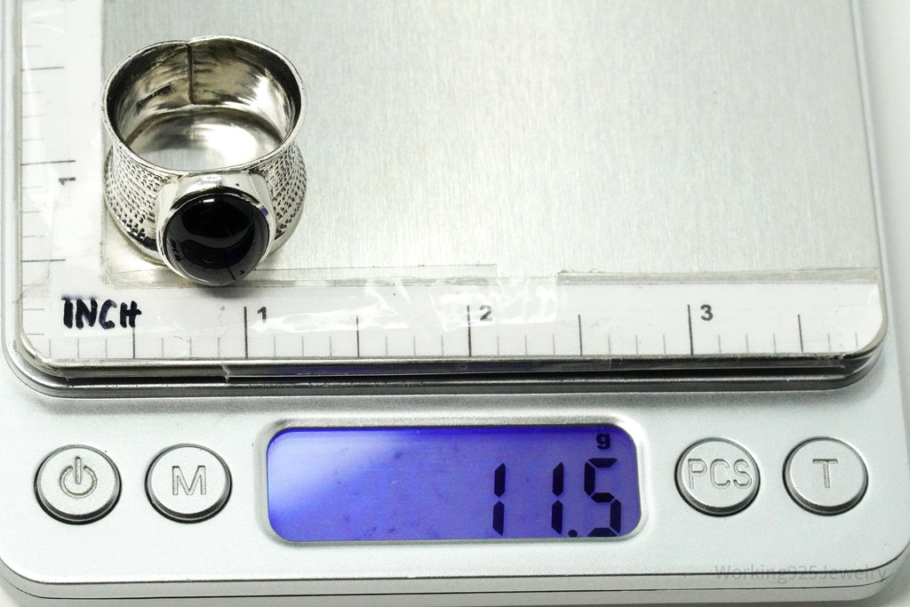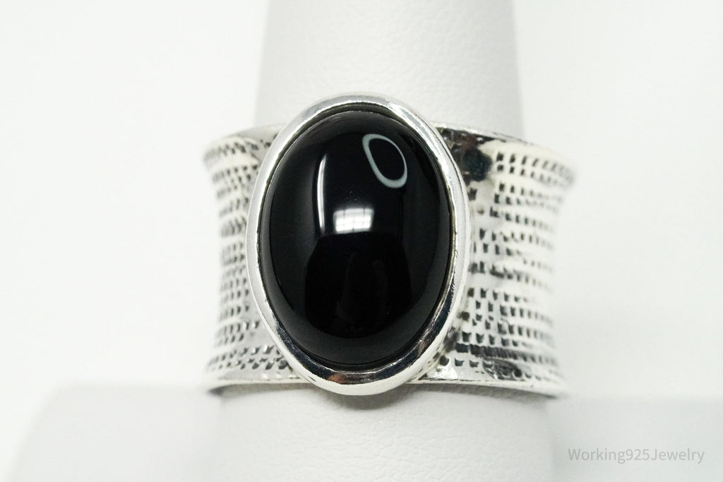 Vintage Black Onyx Sterling Silver Ring - Size 9.25