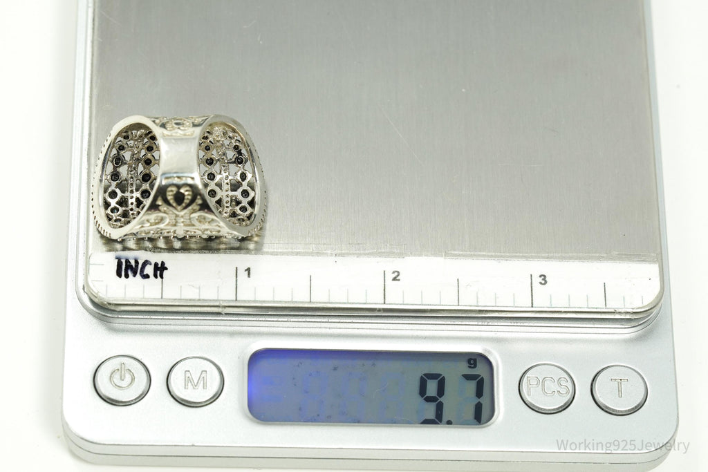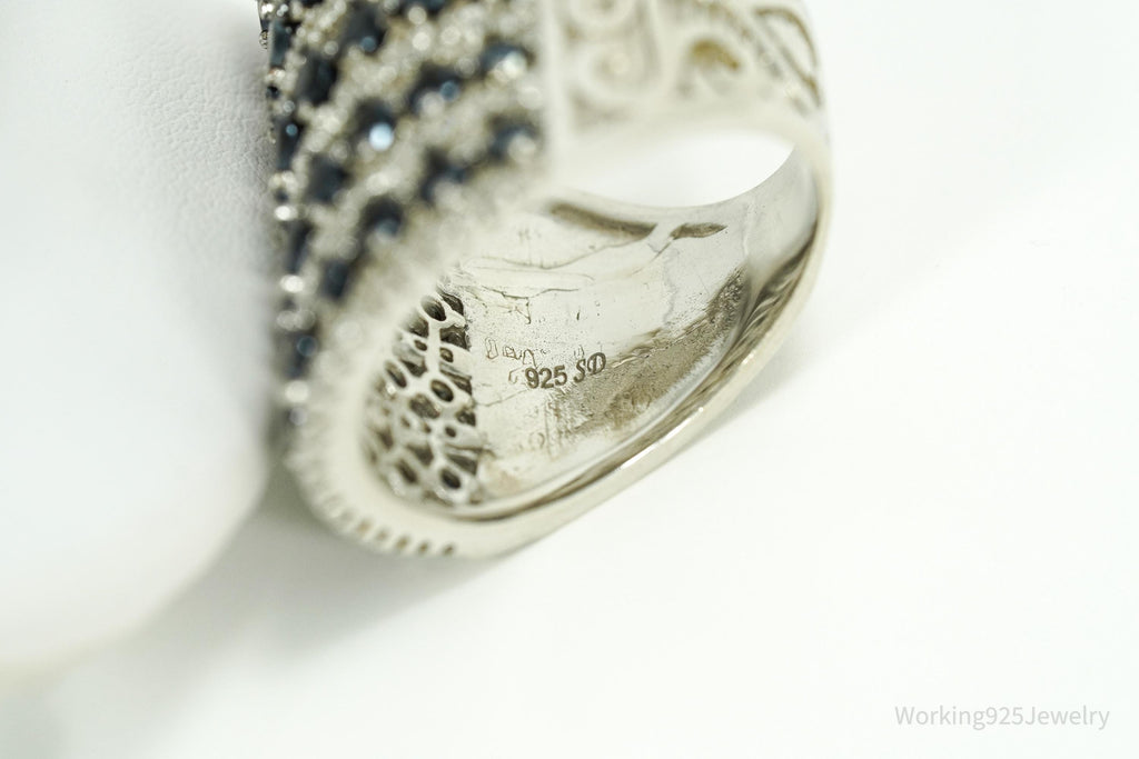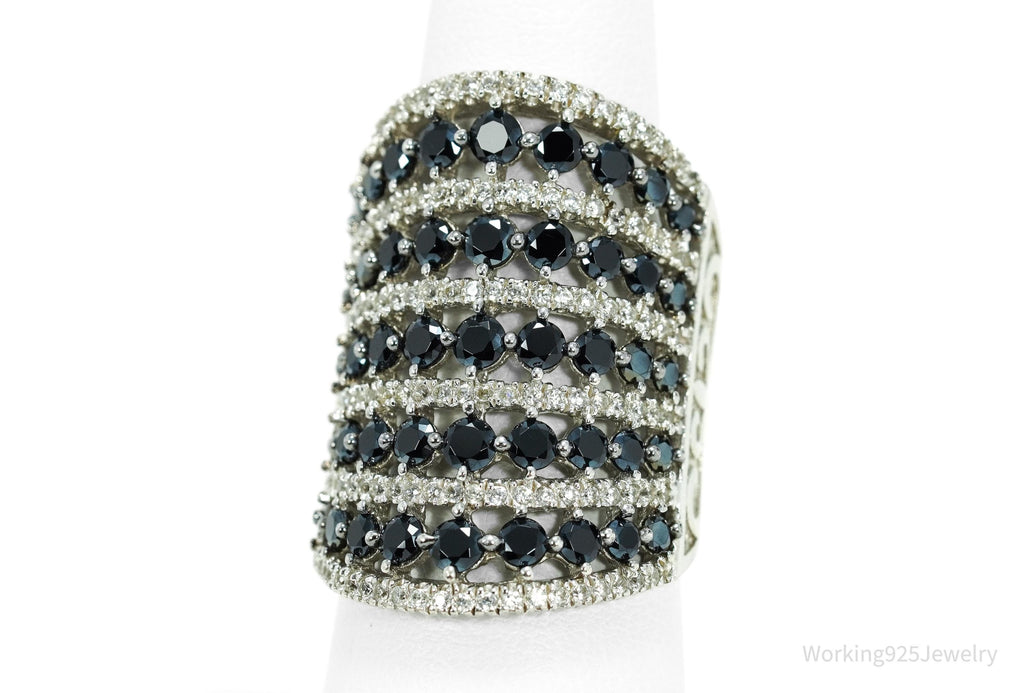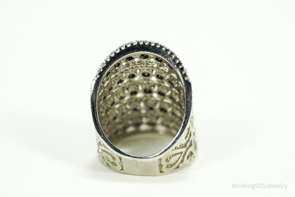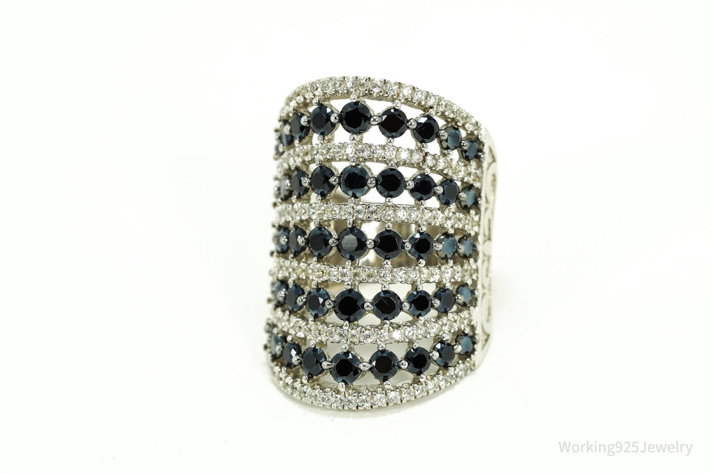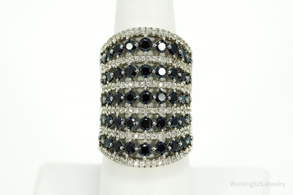 Vintage Black Spinel & White Topaz Sterling Silver Ring - Size 7