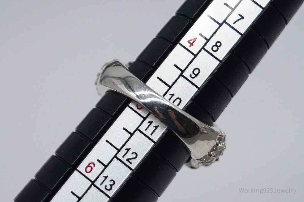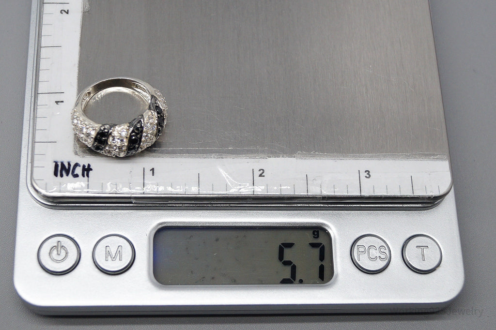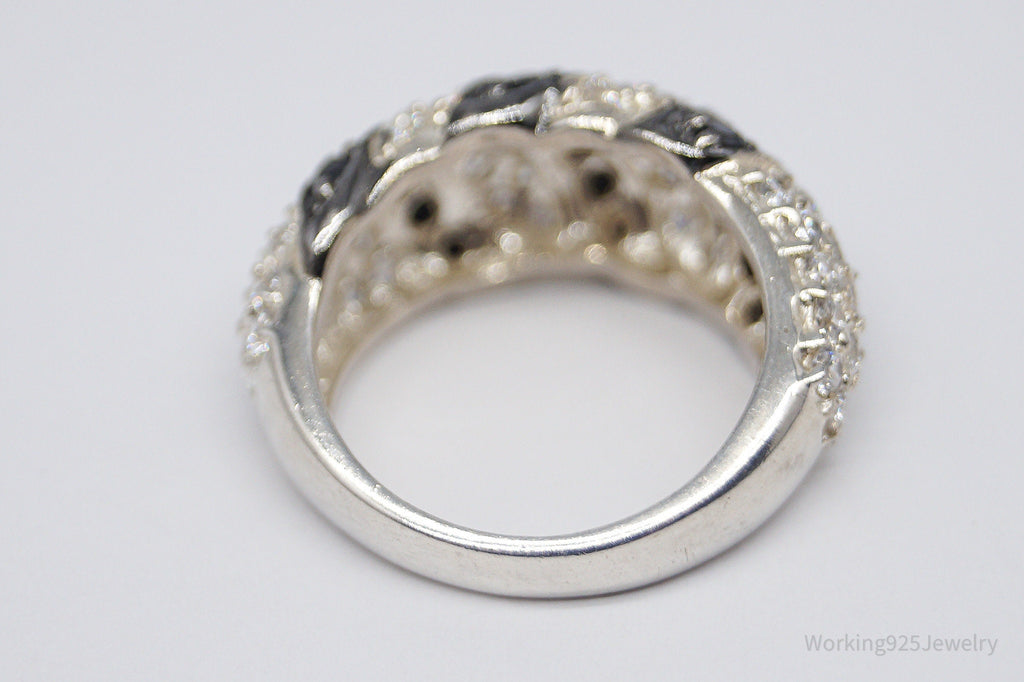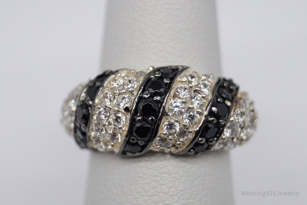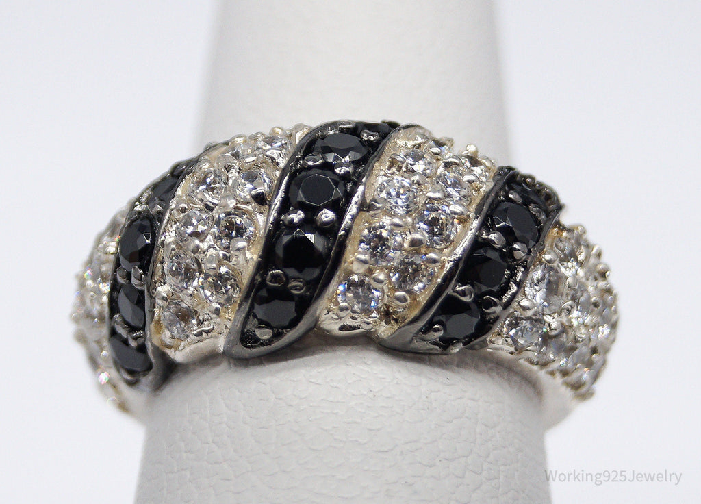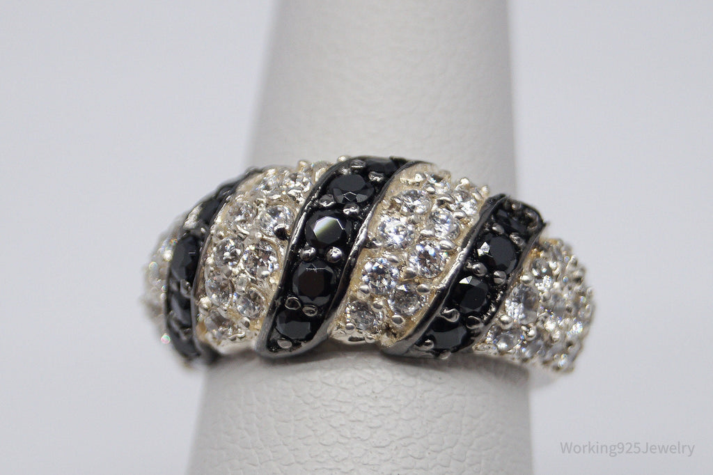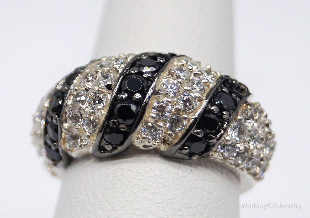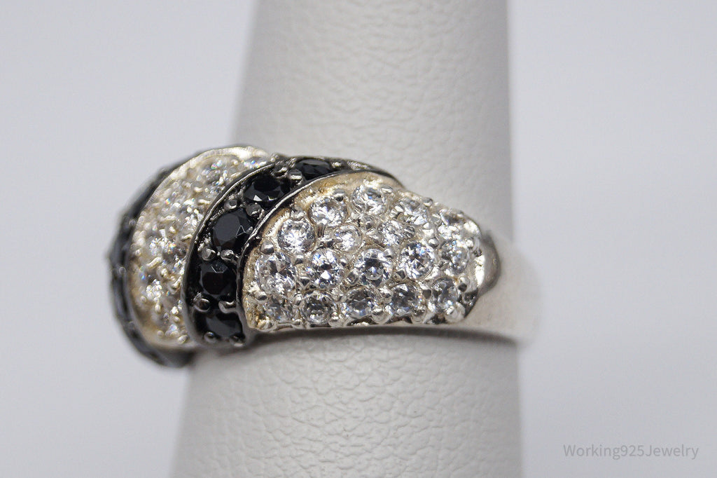 Vintage Black & White Cubic Zirconia Sterling Silver Ring - Size 4.75