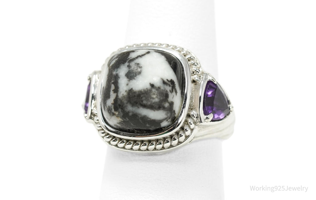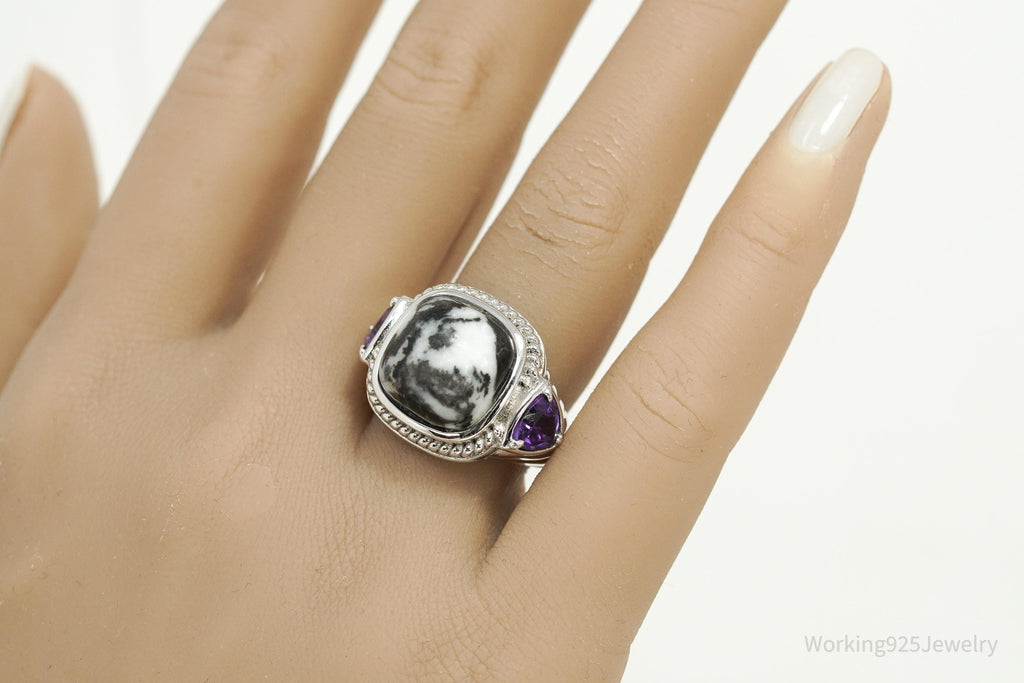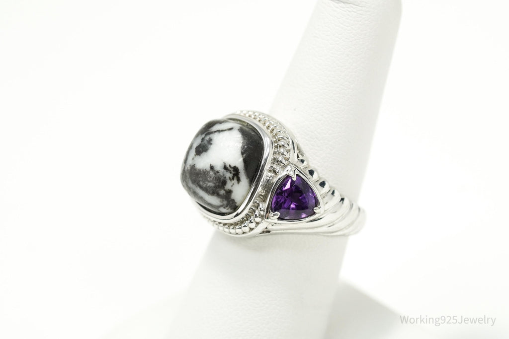 Vintage Black & White Gemstone Amethyst Sterling Silver Ring - Size 7