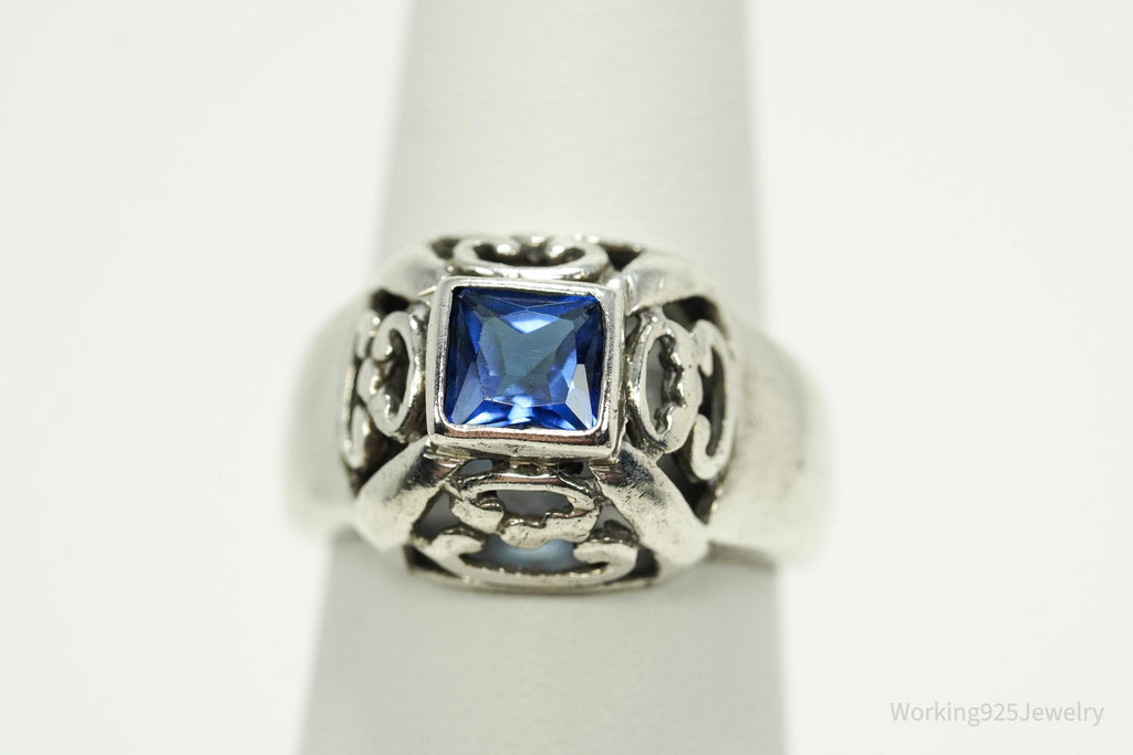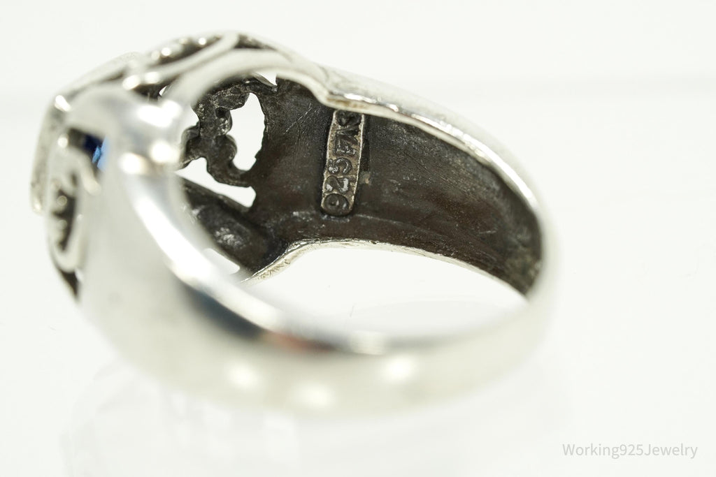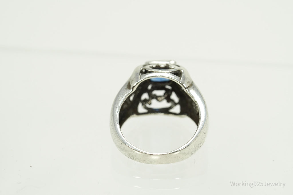Vintage Blue Cubic Zirconia Sterling Silver Ring - Size 7.25