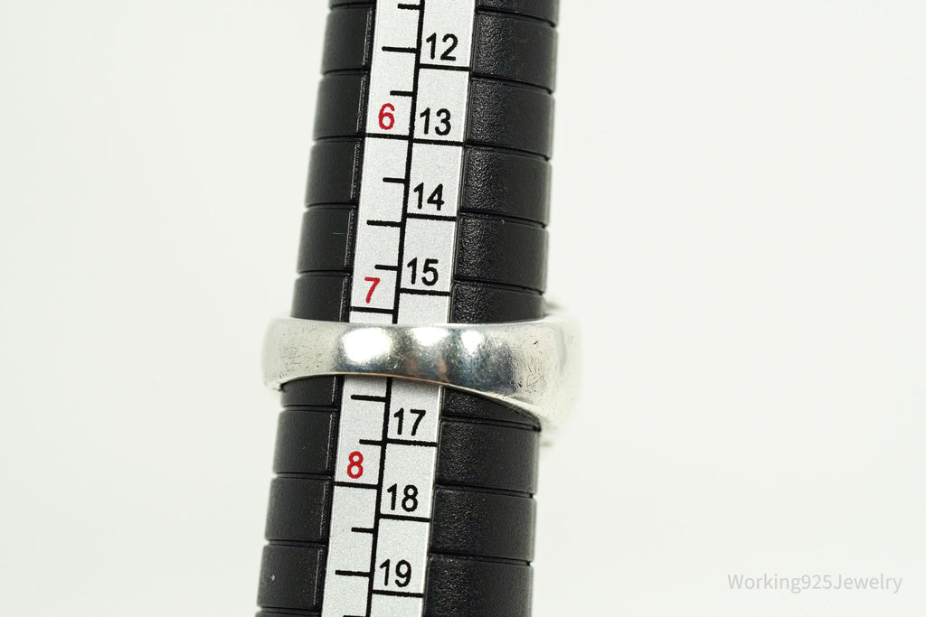 Ring Listings: It is sometimes difficult to determine how a ring will fit without being able to try it on. I always recommend taking your favorite ring to a local jeweler and comparing the way that it sits on a mandrel (ring sizer) with the pictures in the listings prior to purchase. Sometimes wide band rings fit a little differently and I always want my customers to be 100% happy with their purchases! Please let me know if I can help by offering more pictures for size comparison.