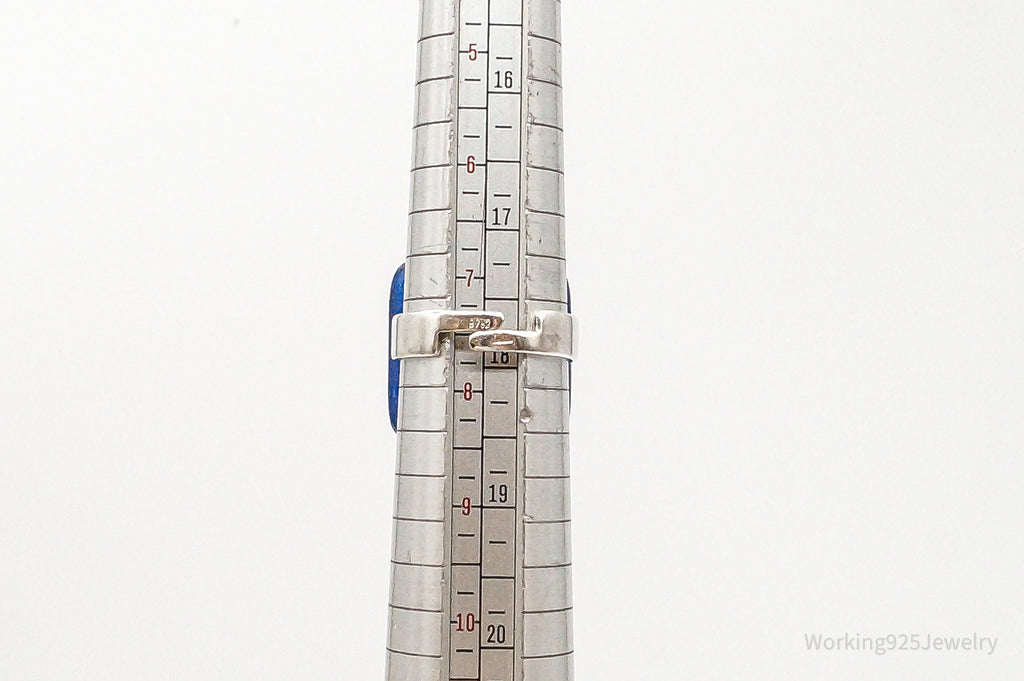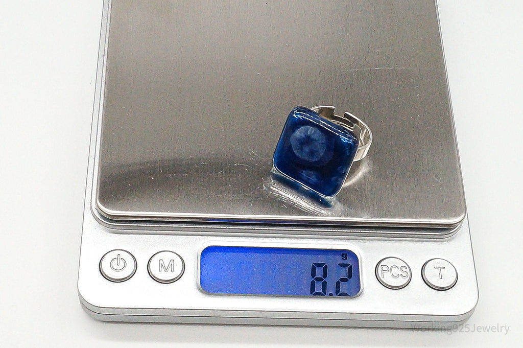 Vintage Blue Glass Sterling Silver Ring - Size 7.5 Adjustable