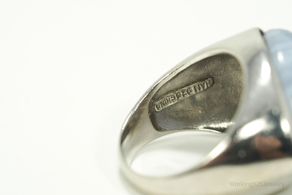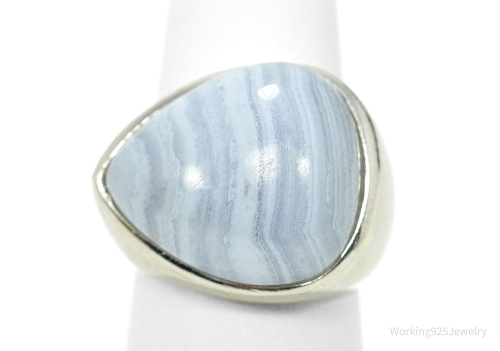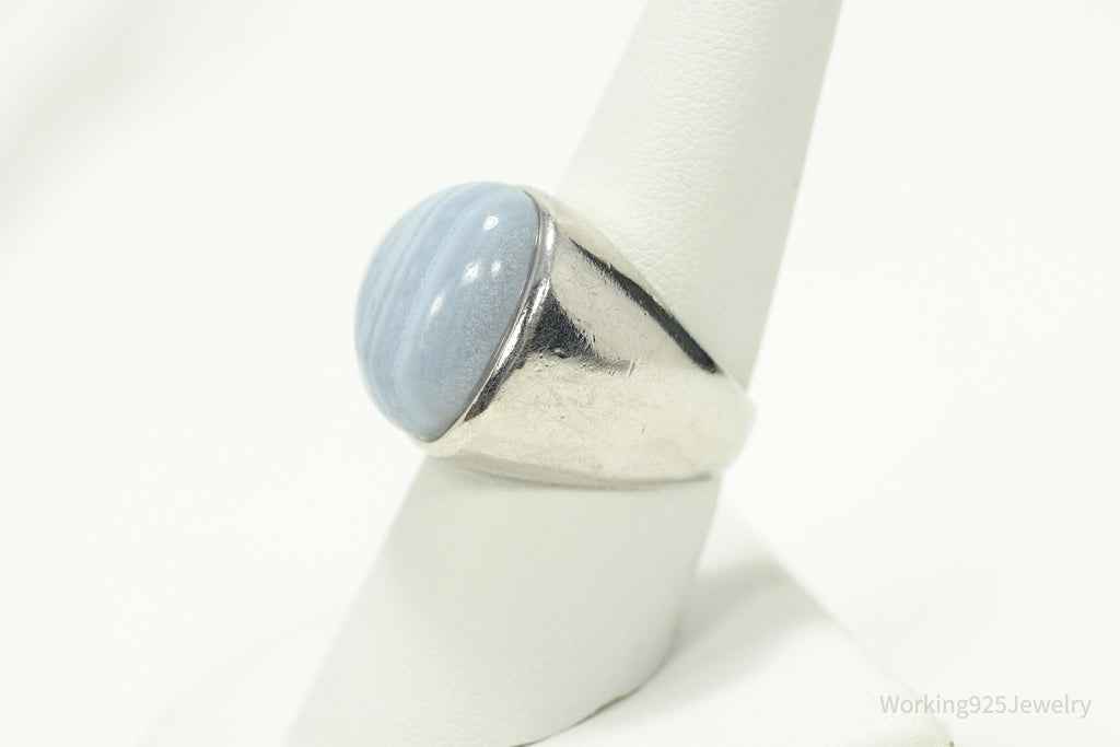 Vintage Blue Lace Agate Sterling Silver Ring - Size 8.25