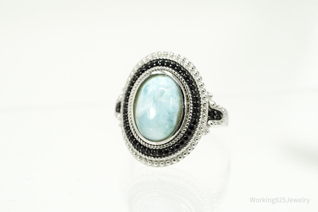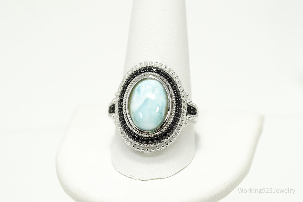 Vintage Blue Larimar & Black Spinel Sterling Silver Ring - Size 11