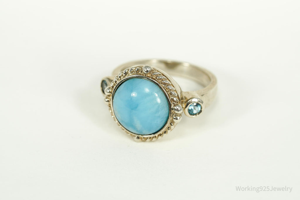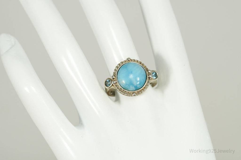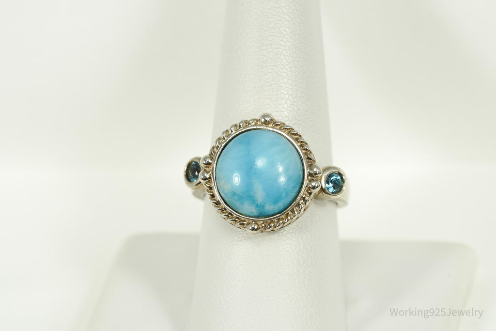 Vintage Blue Larimar & Blue Topaz Sterling Silver Ring - Size 9