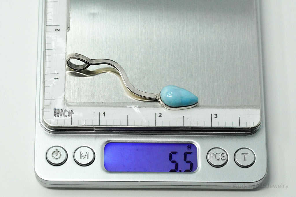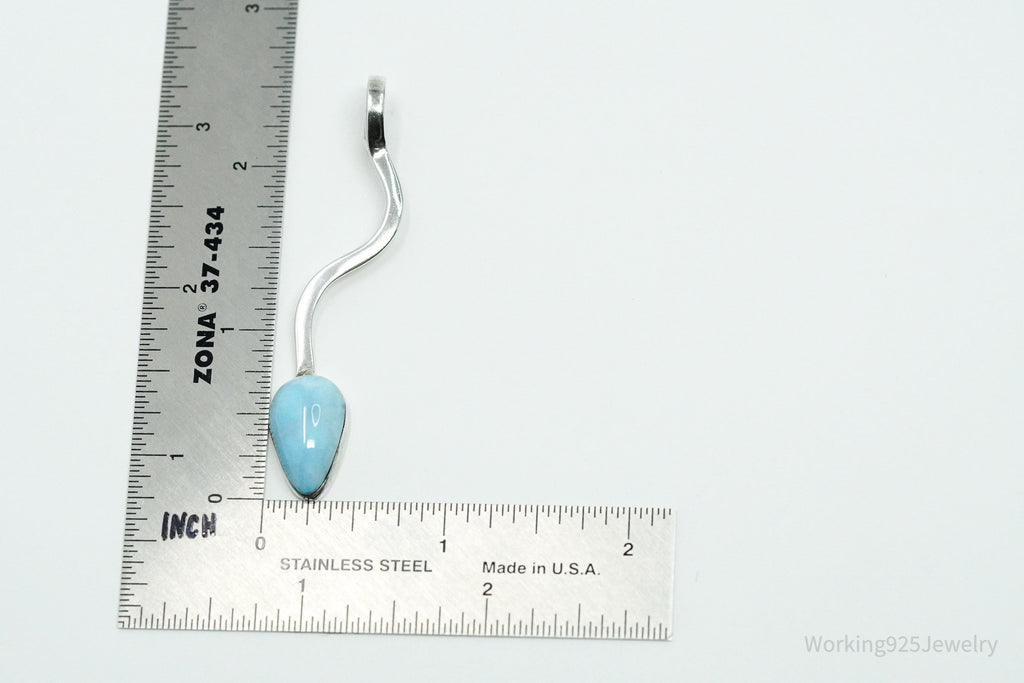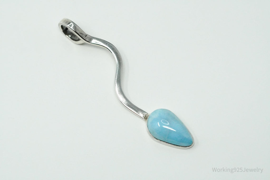 Vintage Blue Larimar Modernist Style Sterling Silver Necklace Pendant