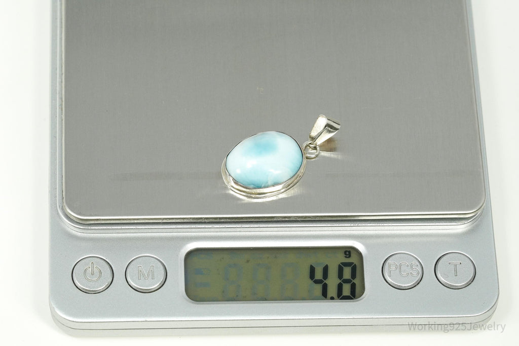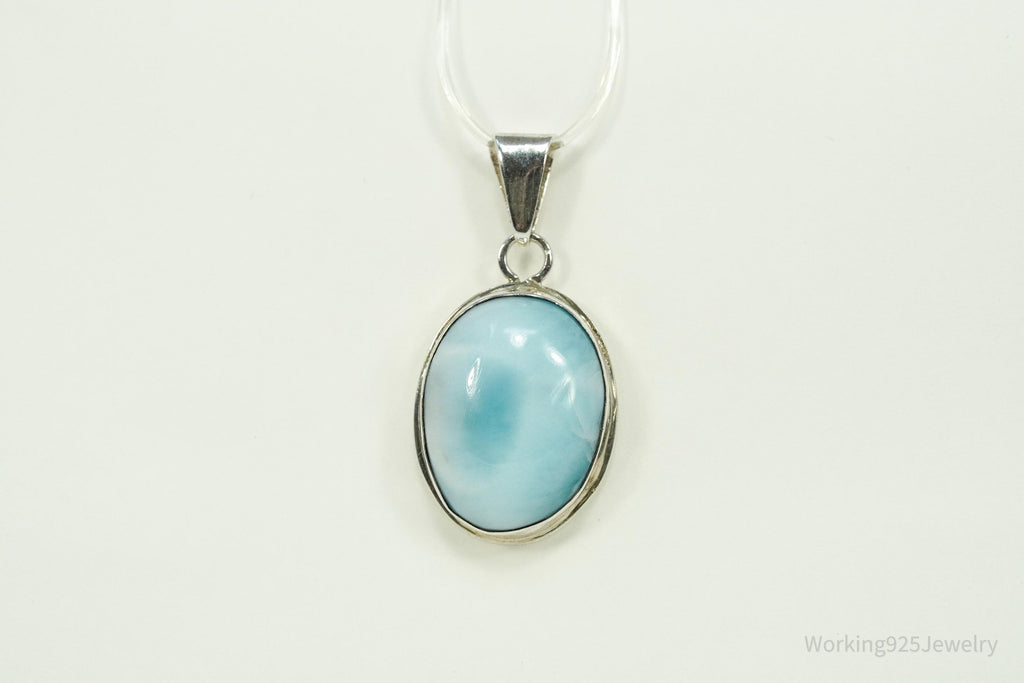 Vintage Blue Larimar Sterling Silver Necklace Pendant
