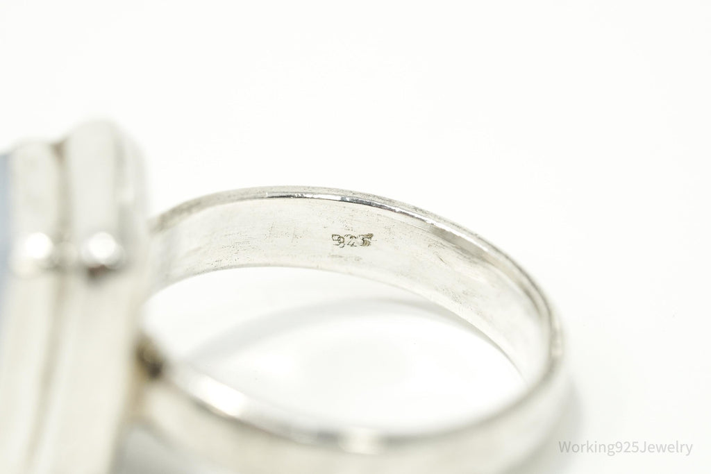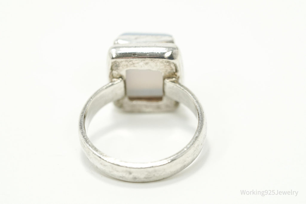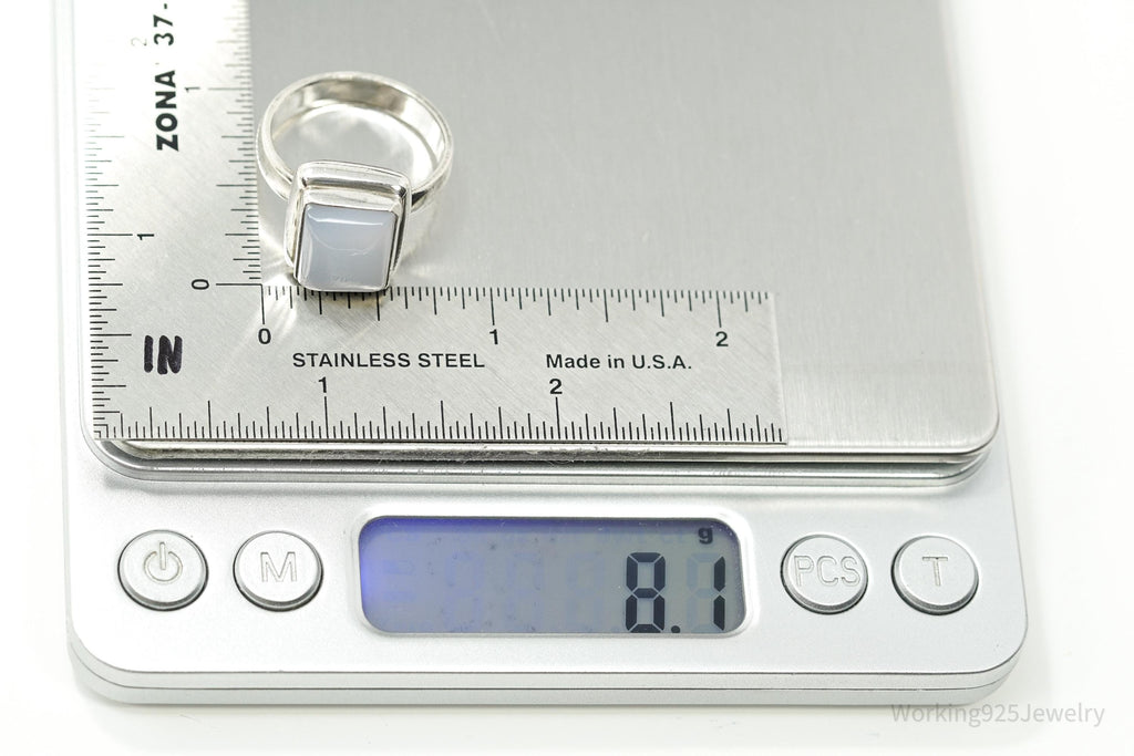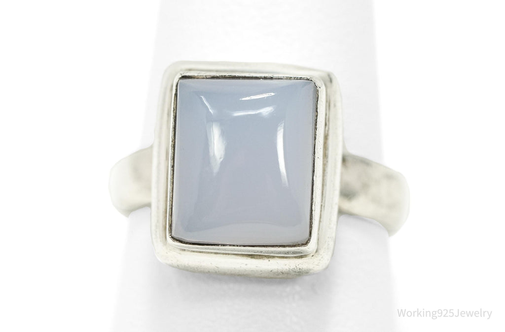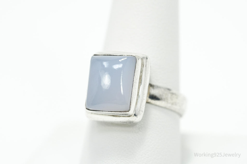 Vintage Blue Lavender Chalcedony Sterling Silver Ring - Size 9