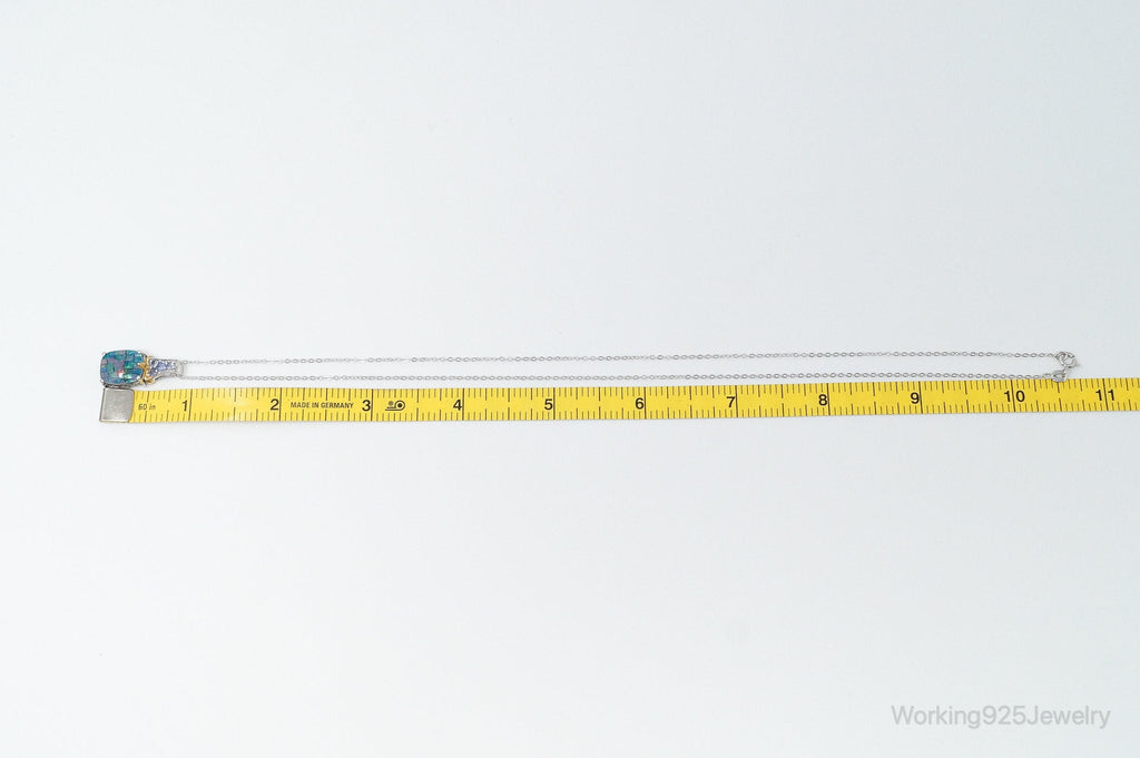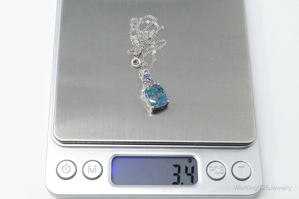Vintage Blue Opal Amethyst Gold Vermeil Sterling Silver Necklace