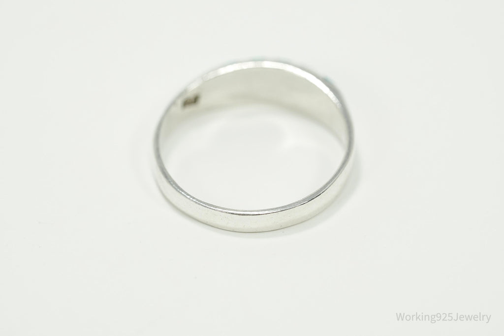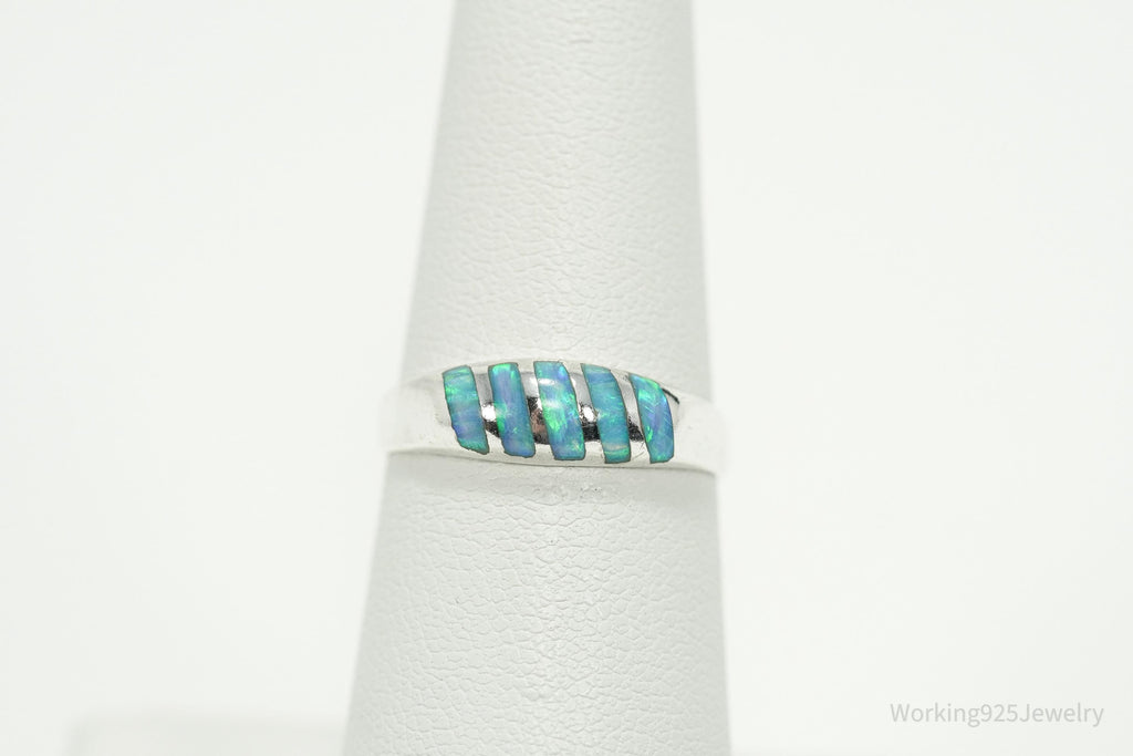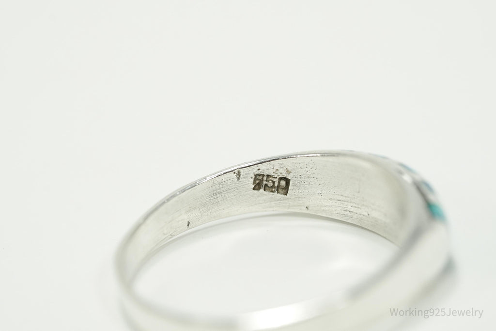 Vintage Blue Opal Inlay 950 Silver Ring - Size 6.5